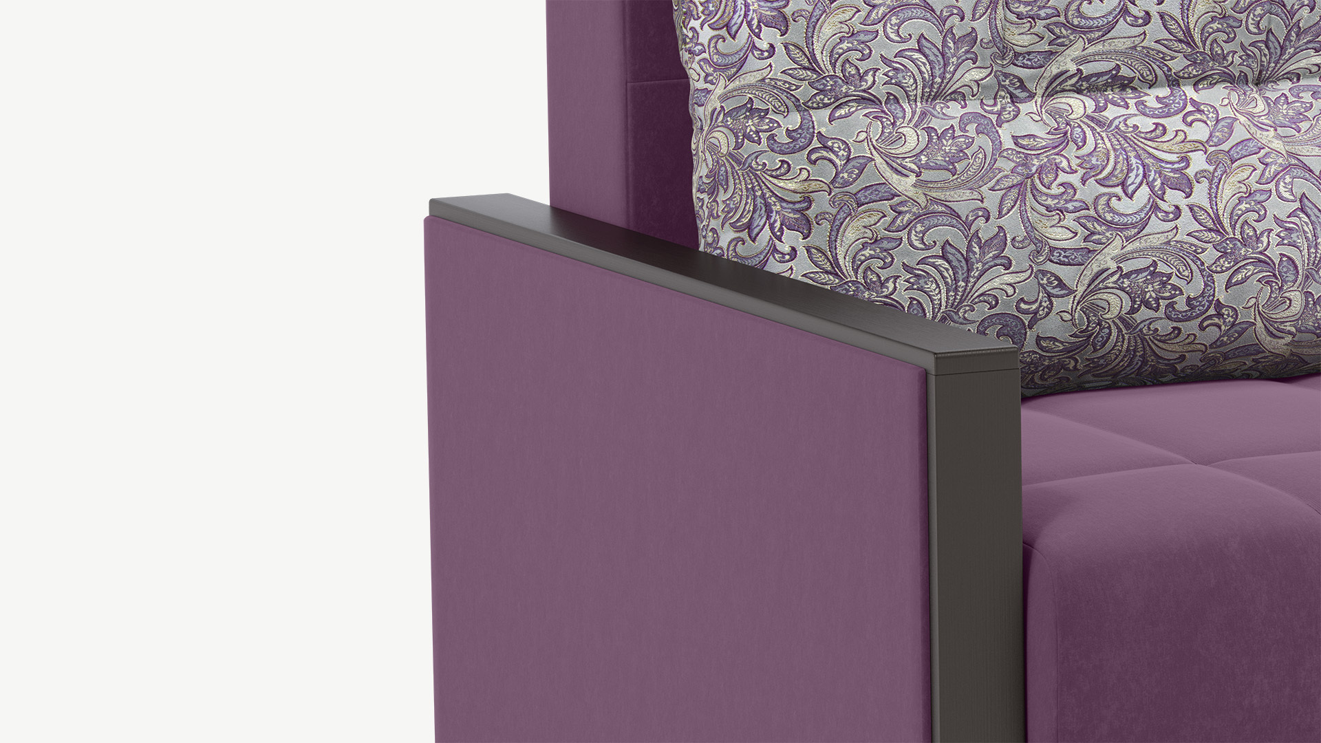 На подлокотники со столешницей Вы всегда сможете поставить чашечку чая. Имитируя фактуру дерева, декоративная накладка здесь буквально обрамляет подлокотники дивана, становясь стильным и практичным решением.