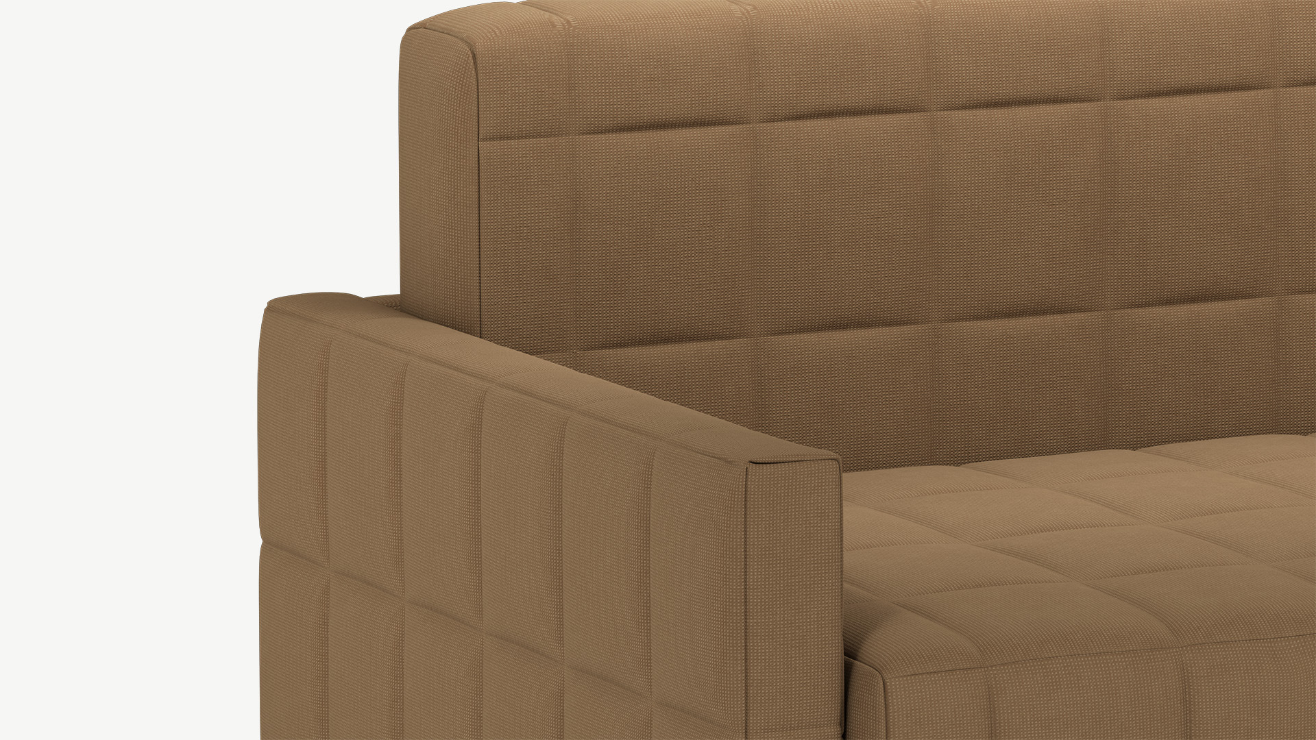 Диван MOON FAMILY 124 удачно сочетает вполне традиционный образ с веяниями моды. Так, простые лаконичные формы и стежка в квадрат, использованная для всей поверхности дивана, создают образ привычный и уютный, а вот мягкие подлокотники и приспинные подушки без утяжки — дань современным тенденциям.