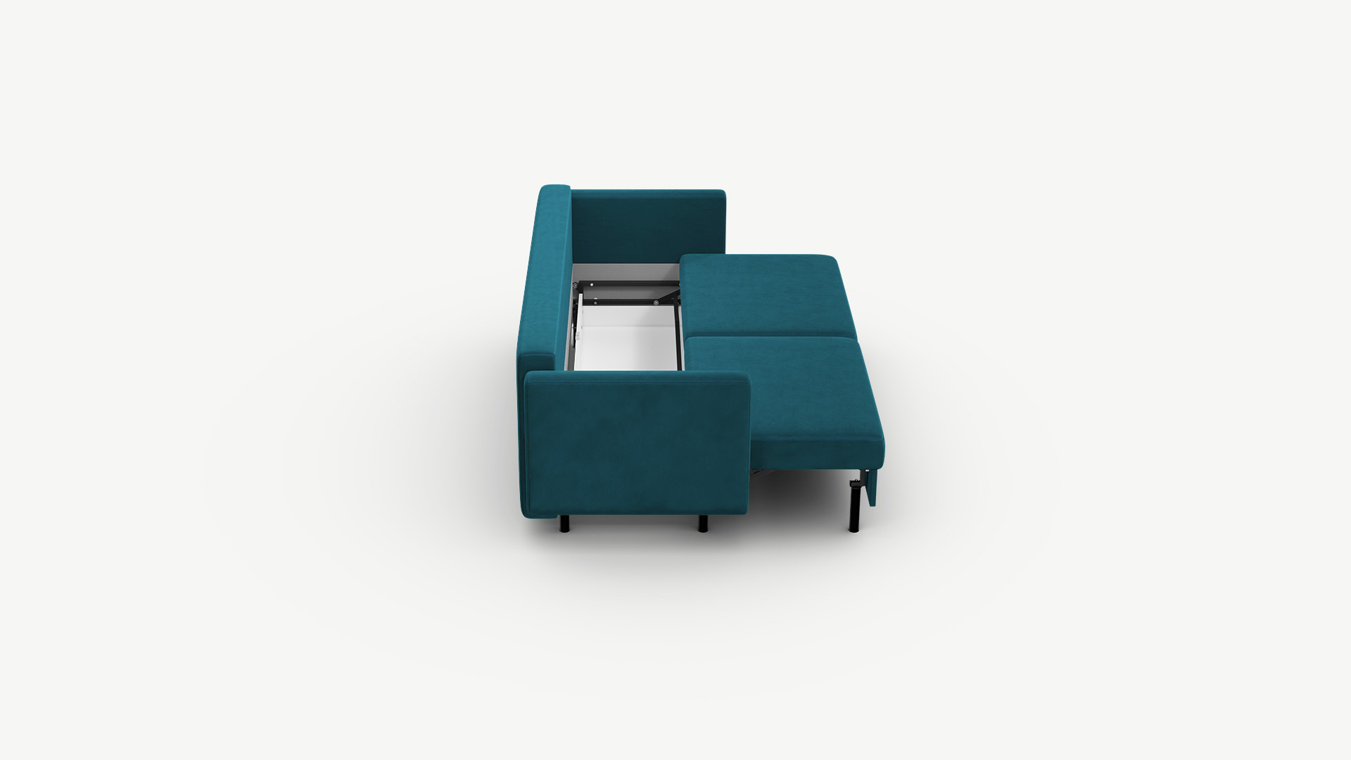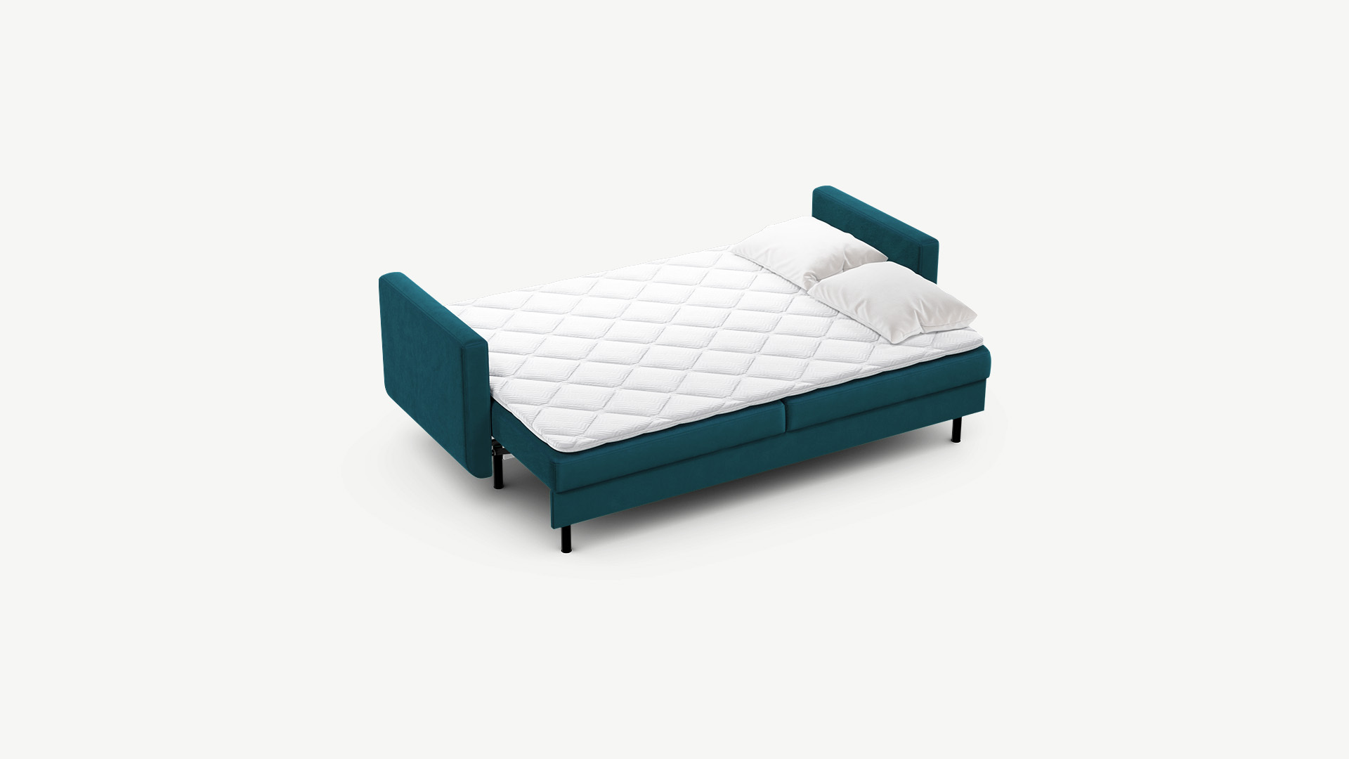 Механизм трансформации «Пантограф» подходит для ежедневного использования. Диван легко раскладывается и складывается, не повреждая напольное покрытие. Диван стоит на четырех основных опорах, в то время как дополнительные остаются скрытыми, появляясь плавно и бесшумно в единственно нужный момент — при трансформации дивана в кровать.