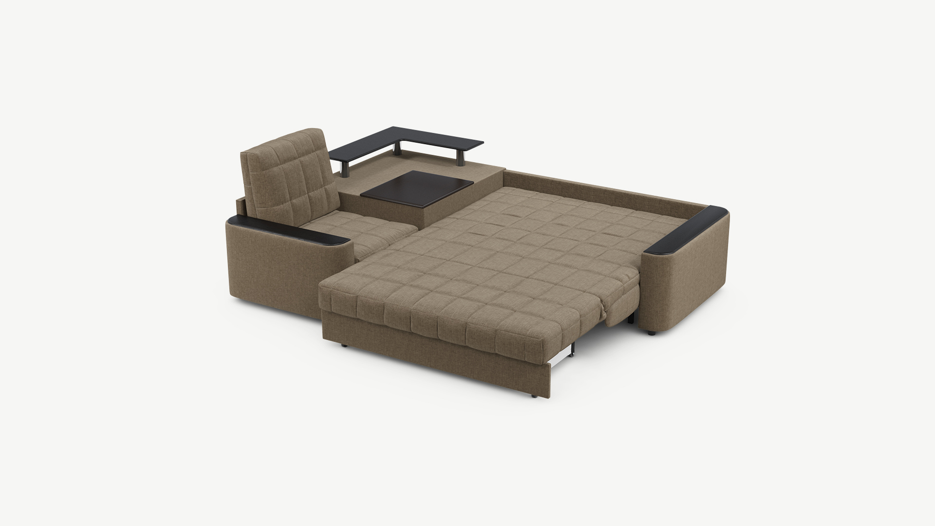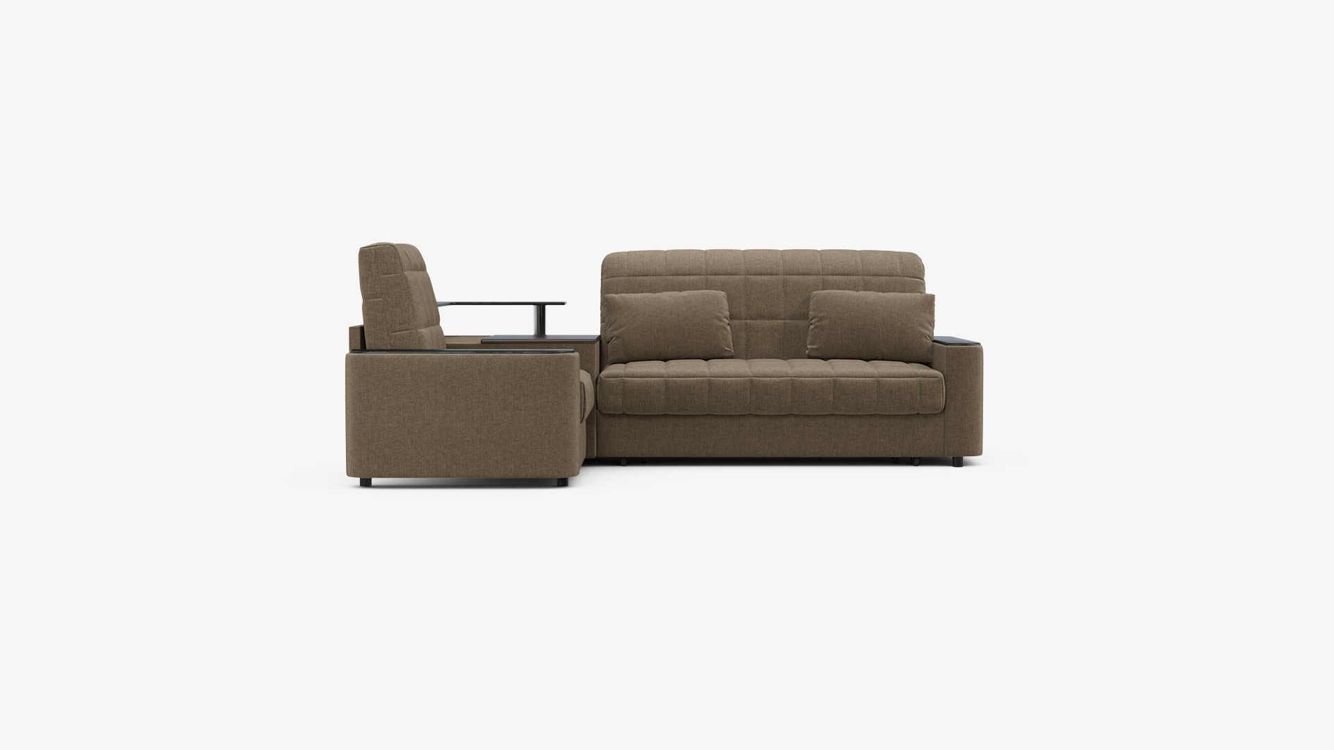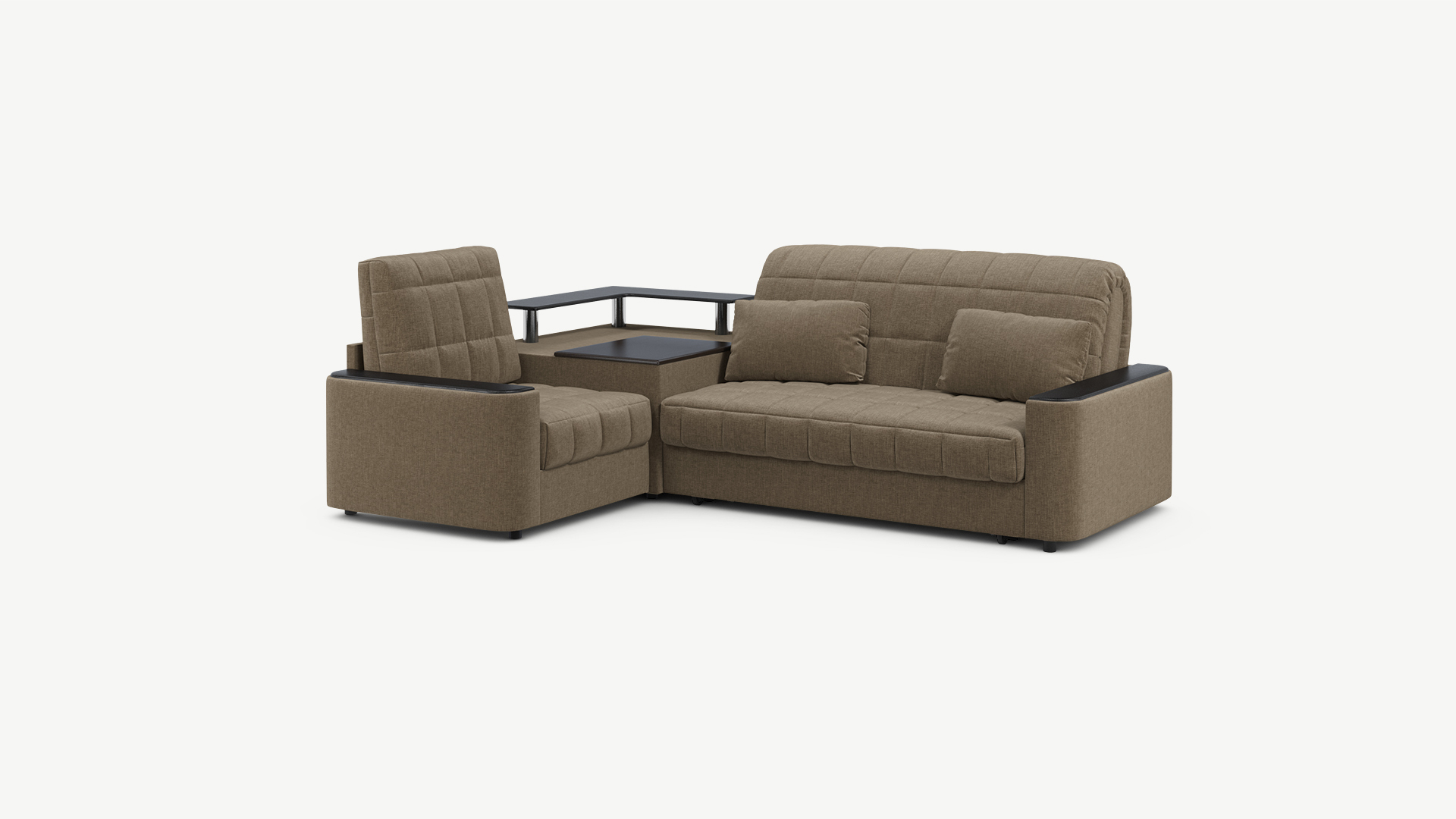 Выбирая угловой диван со столиком, Вы сможете проводить время с максимальным комфортом, многократно повысив функциональность дивана. Все дело в том, что под столешницей модуля расположена вместительная емкость для хранения. Кроме того, поверхность столика — идеальное пространство для чаепития в приятной компании, а также место для множества актуальных мелочей — от ноутбука до косметики.