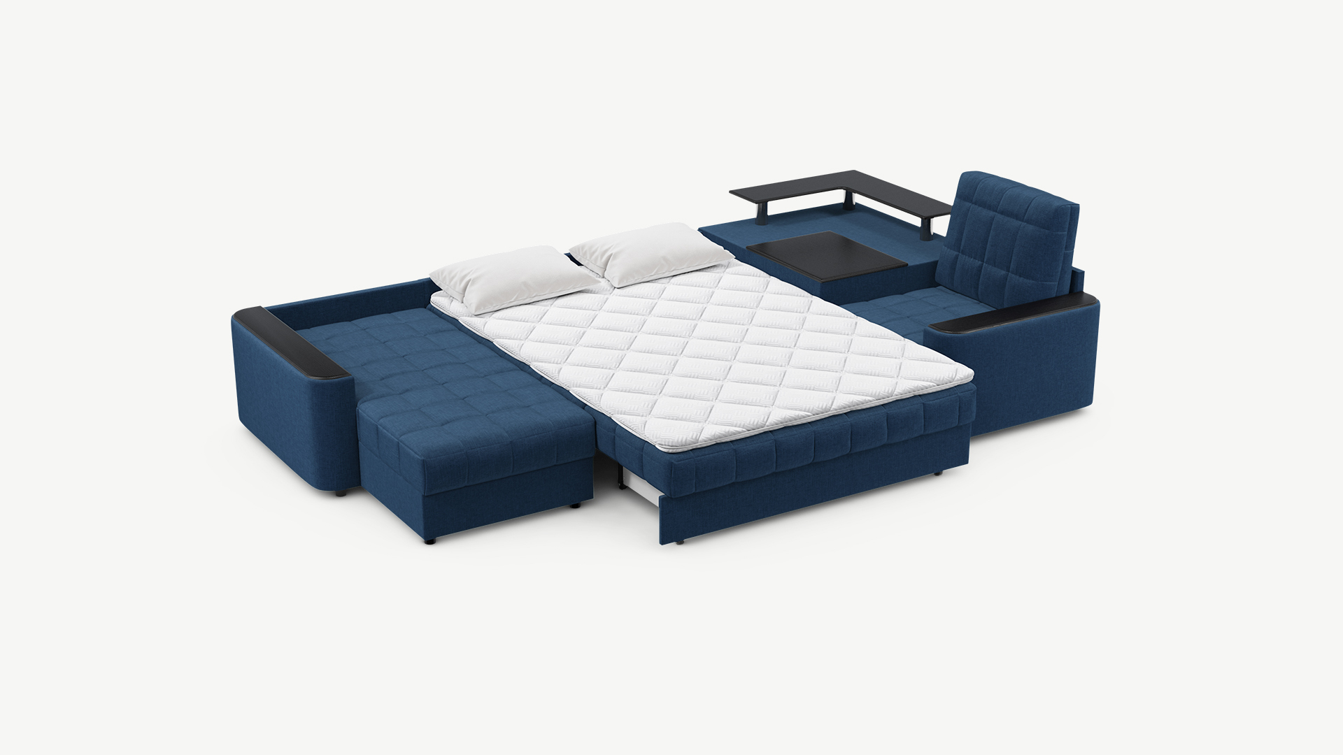 Выбирая угловой диван со столиком, Вы сможете проводить время с максимальным комфортом, многократно повысив функциональность дивана. Все дело в том, что под столешницей модуля расположена вместительная емкость для хранения. Кроме того, поверхность столика — идеальное пространство для чаепития в приятной компании, а также место для множества актуальных мелочей — от ноутбука до косметики.