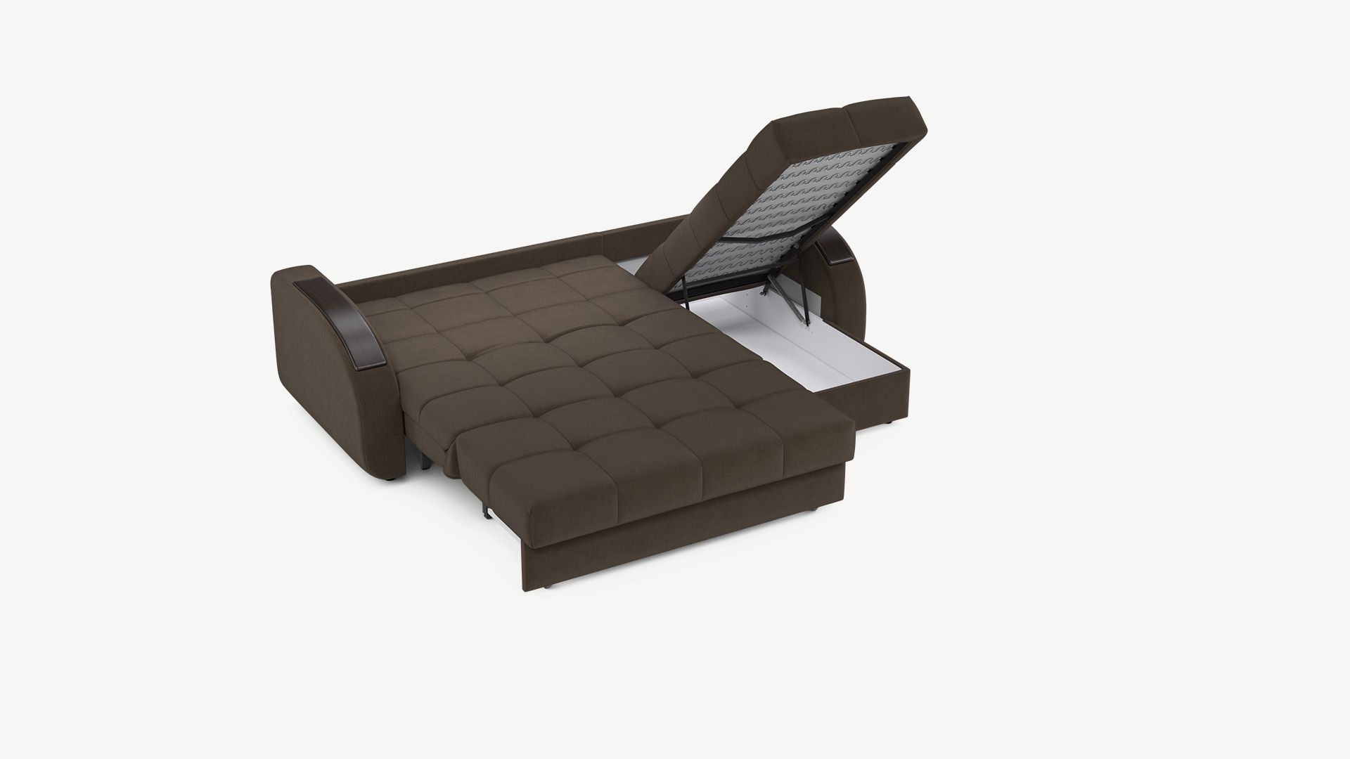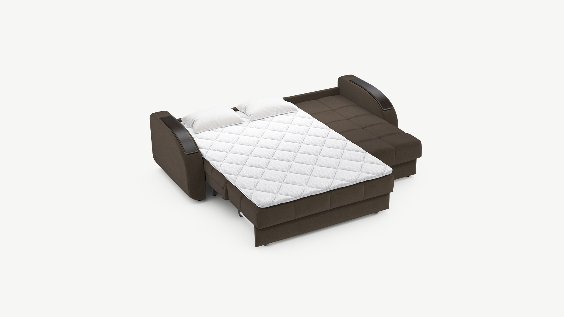 Оттоманка обеспечивает дополнительное пространство для отдыха, благодаря которому Вы можете располагаться с максимальным комфортом, вытянув ноги. Под данной секцией расположен вместительный бельевой короб.