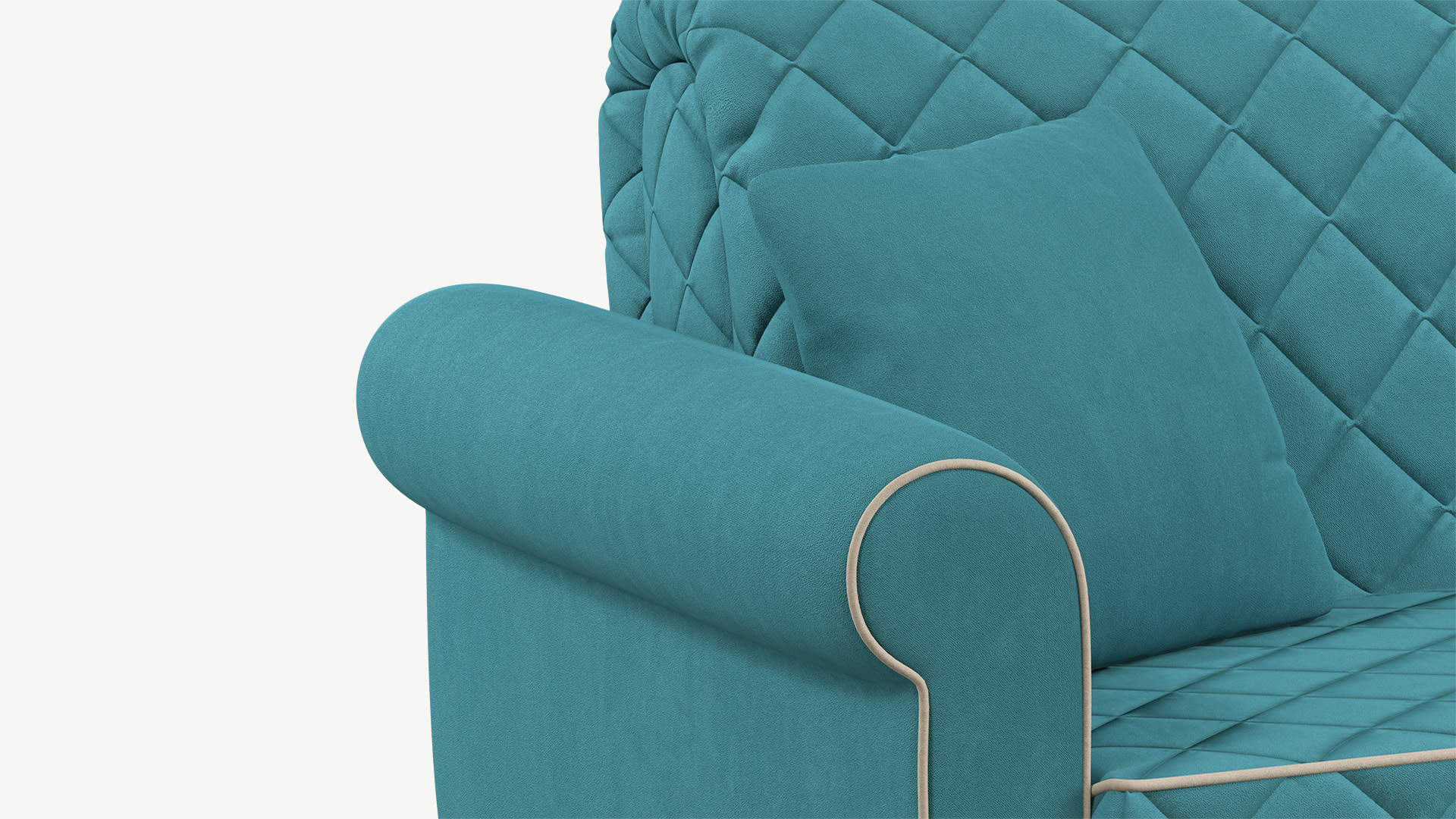 Дизайн MOON FAMILY 123 с винтажной формой подлокотников настраивает на звучание классики. Однако приспинные подушки, решенные по принципу декоративных, добавляют образу динамики, удачно включая диван в модный контекст дня.