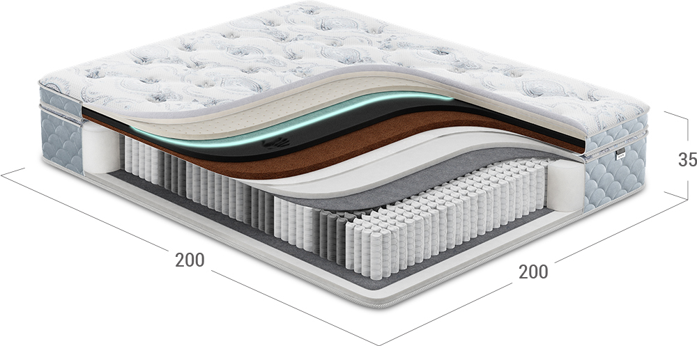 Матрас, в основу которого положен независимый пружинный блок (НПБ). Обратите внимание: чем большее количество пружин приходится на спальное место, тем точнее оказывается поддержка спины, а значит, более комфортным становится матрас и Ваш сон.