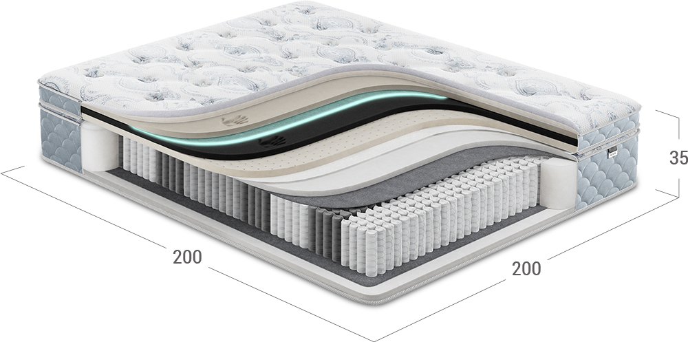 • Адаптивная пропитка поддерживает оптимальный температурный режим спального места.