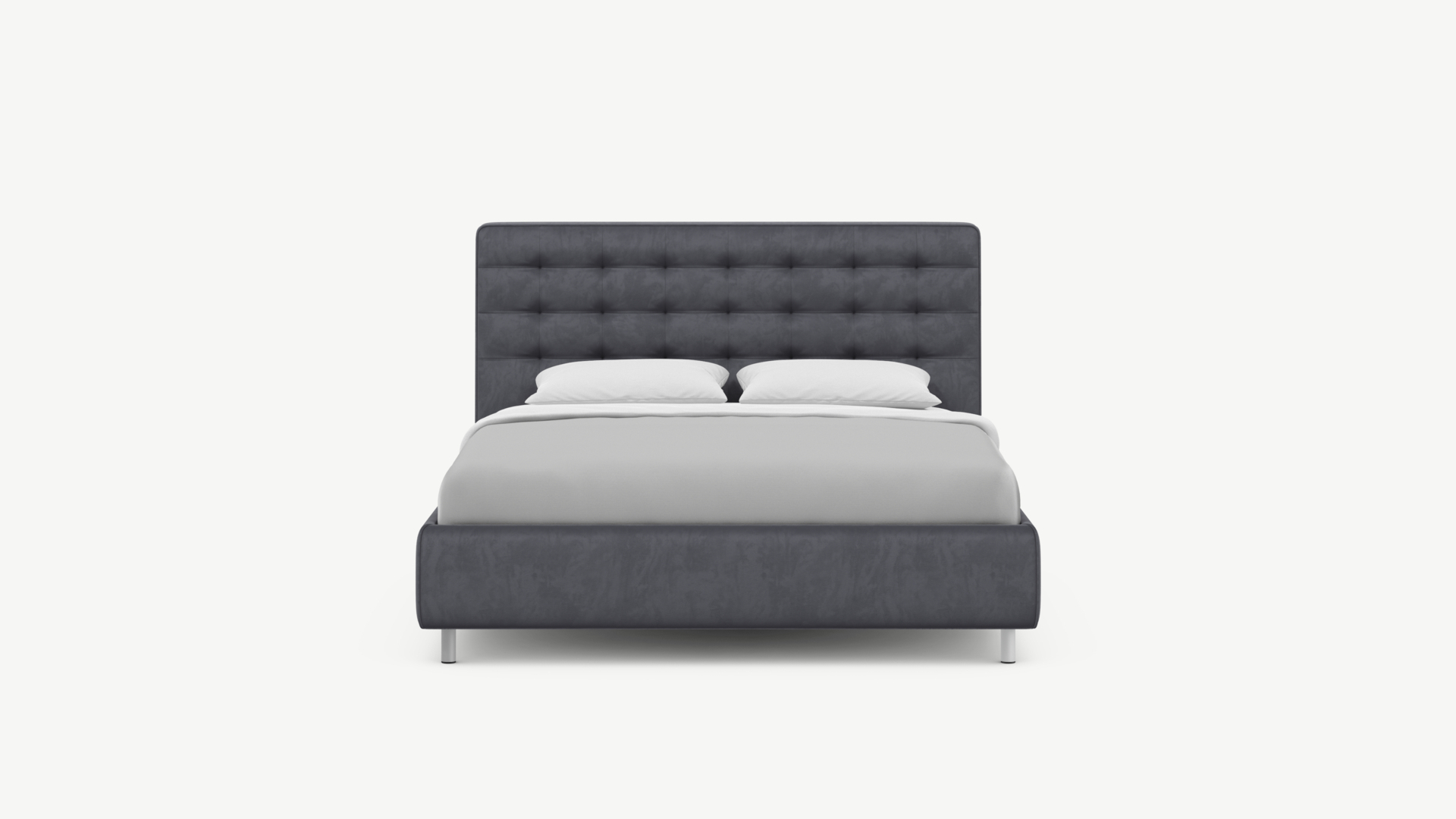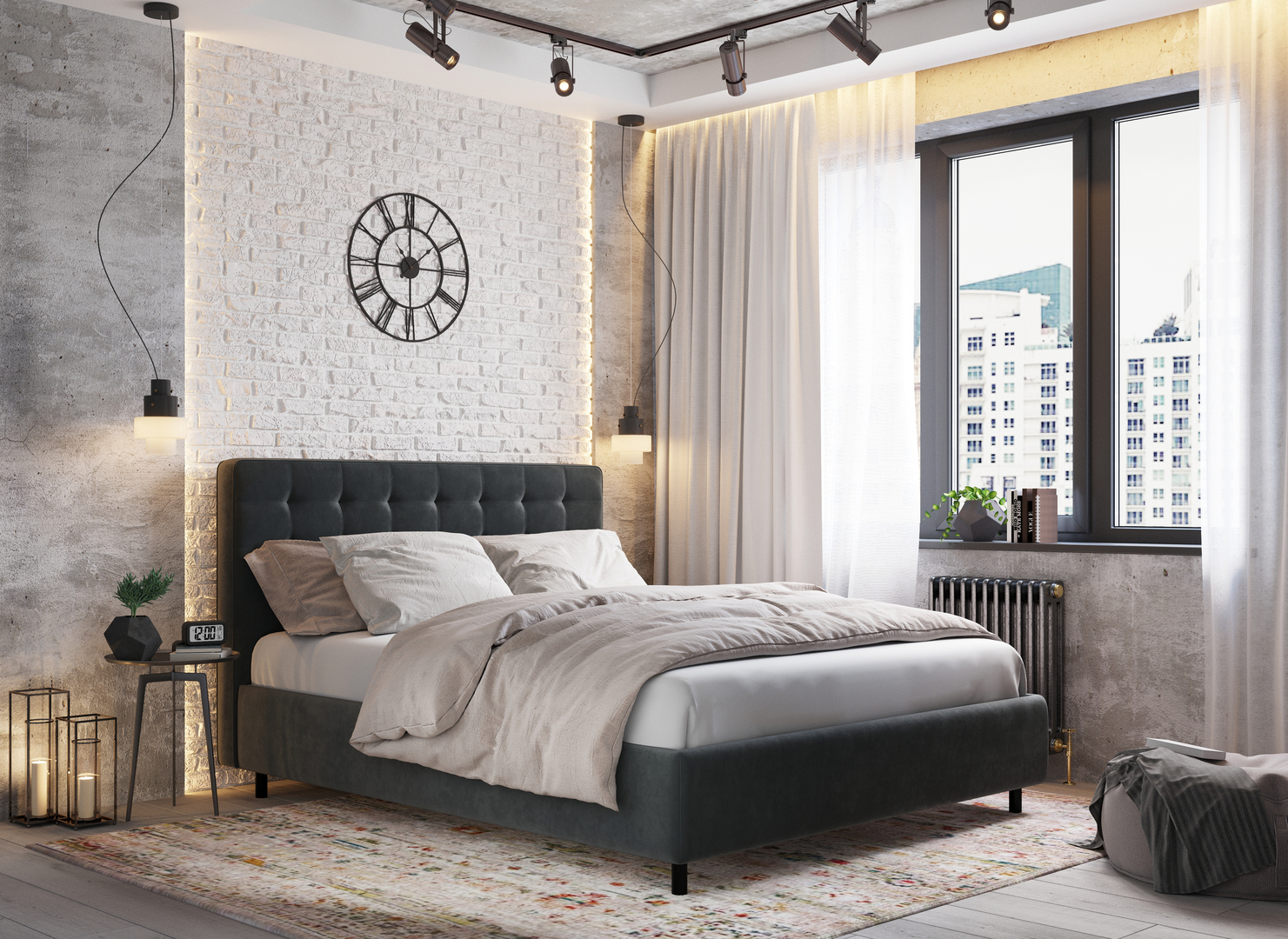 Оформите образ кровати, выбирая обивочный материал, который подчеркнет звучание Вашей спальни и отразит Ваш вкус. Обратите внимание на однотонный гладкий велюр, который усиливает объемную фактуру стежки.