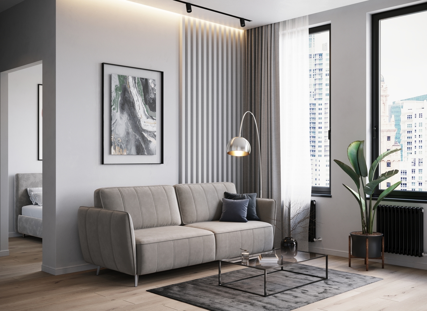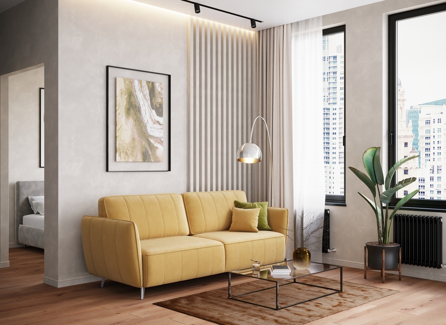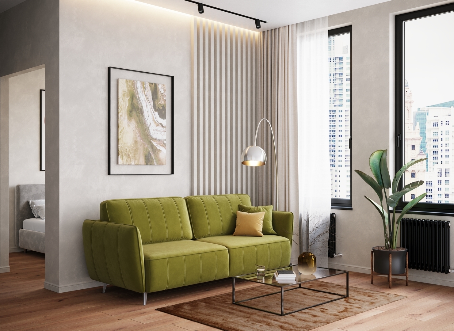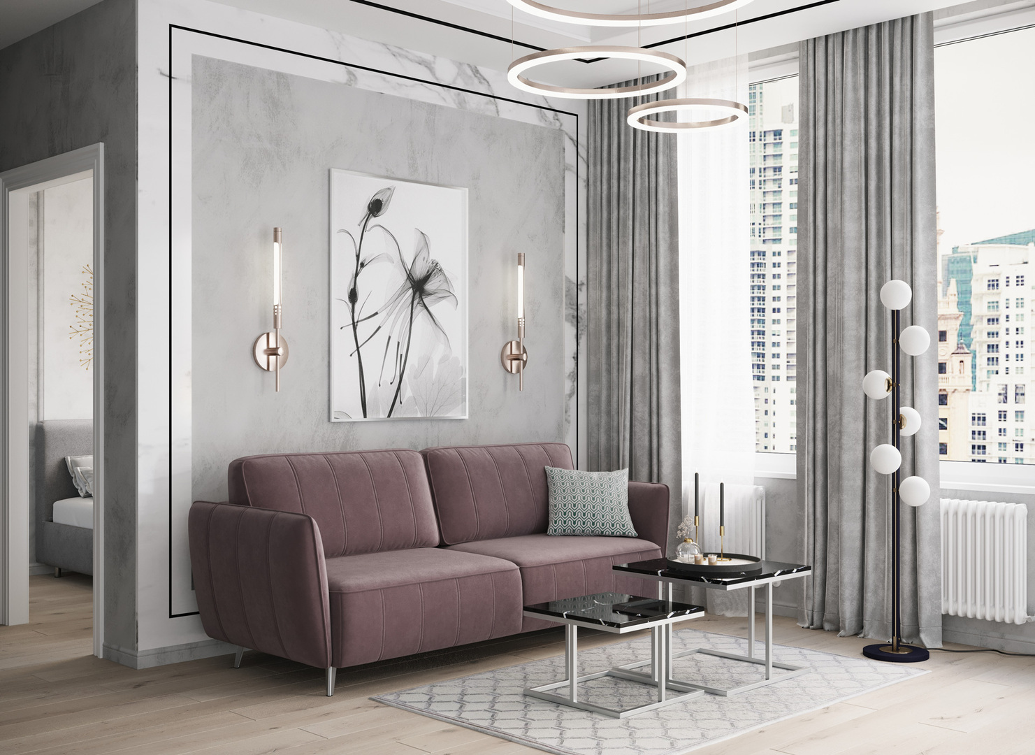 Механизм трансформации «Пантограф» подходит для ежедневного использования. Позволяет легко раскладывать и складывать диван, обеспечивая минимальный контакт дополнительных опор с напольным покрытием. Диван стоит на четырех наклонных опорах, в то время как дополнительные остаются скрытыми, появляясь плавно и бесшумно в единственно нужный момент — при трансформации дивана в кровать.