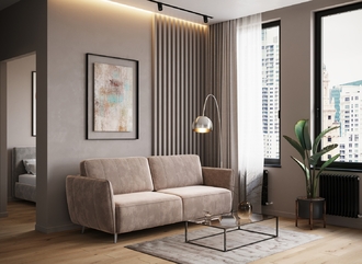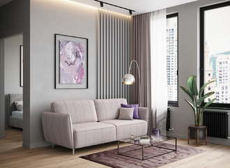Хороший диван для маленькой квартиры. Взял его в однушку, одному спать удобно, место достаточно. Квартира у меня маленькая, диван места много не занял, большой плюс - узкие подлокотники, они не съедают место. Классно на нем работать за ноутбуком, очень удобные подушки, сидеть одно удовольствие. Доставку не задержали, привезли в срок, быстро собрали. Ребята в доставке русские, вежливые, веселые, профессионалы, мало таких вижу. Пользуюсь недавно, пока недостатков не выявил, друзьям тоже понравился. Диван рекомендую и компанию тоже.