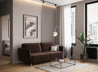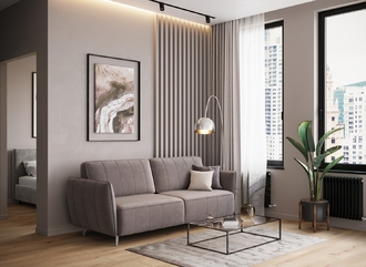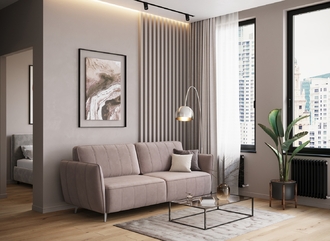 Мне понравился приятный внешний вид дивана, стильный и современный дизайн. Диван можно использовать как полноценное спальное место: он держит тело, как качественный матрас. Диван вместительный, но при этом компактный за счет небольших подлокотников. Приятный бонус – высокие опоры, под которые проходит робот-пылесос. С компанией знакома не первый год, поэтому нет сомнений в качестве материалов. Уверена, что диван прослужит очень долго!