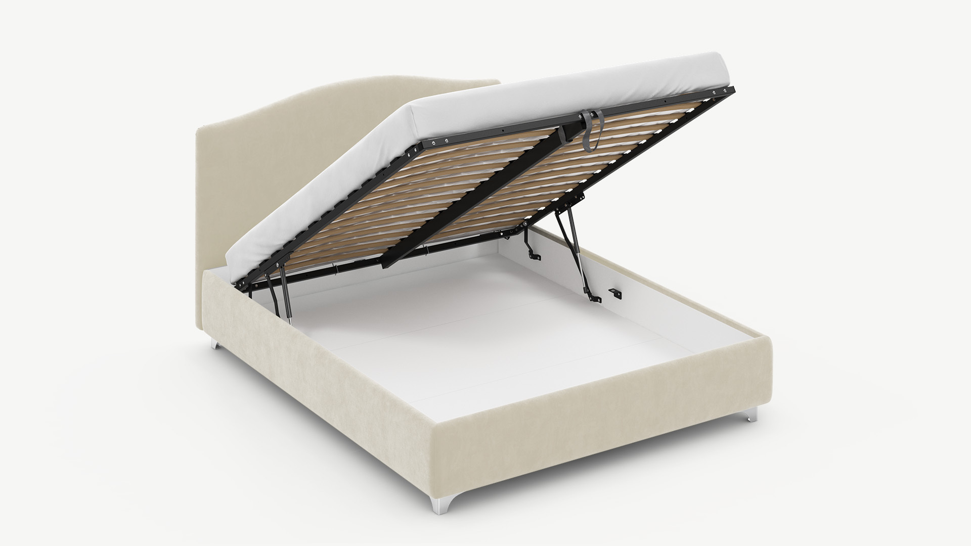 • Скрытая под основанием вместительная емкость без внутренних перегородок позволяет использовать всю площадь подкроватного пространства для хранения вещей.