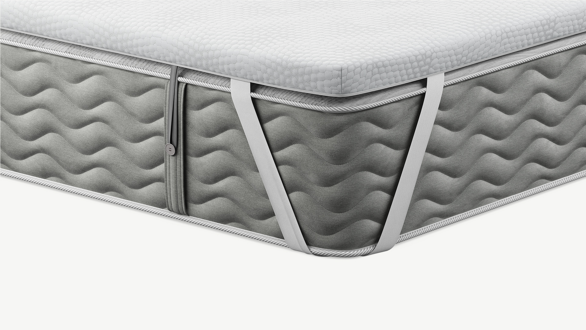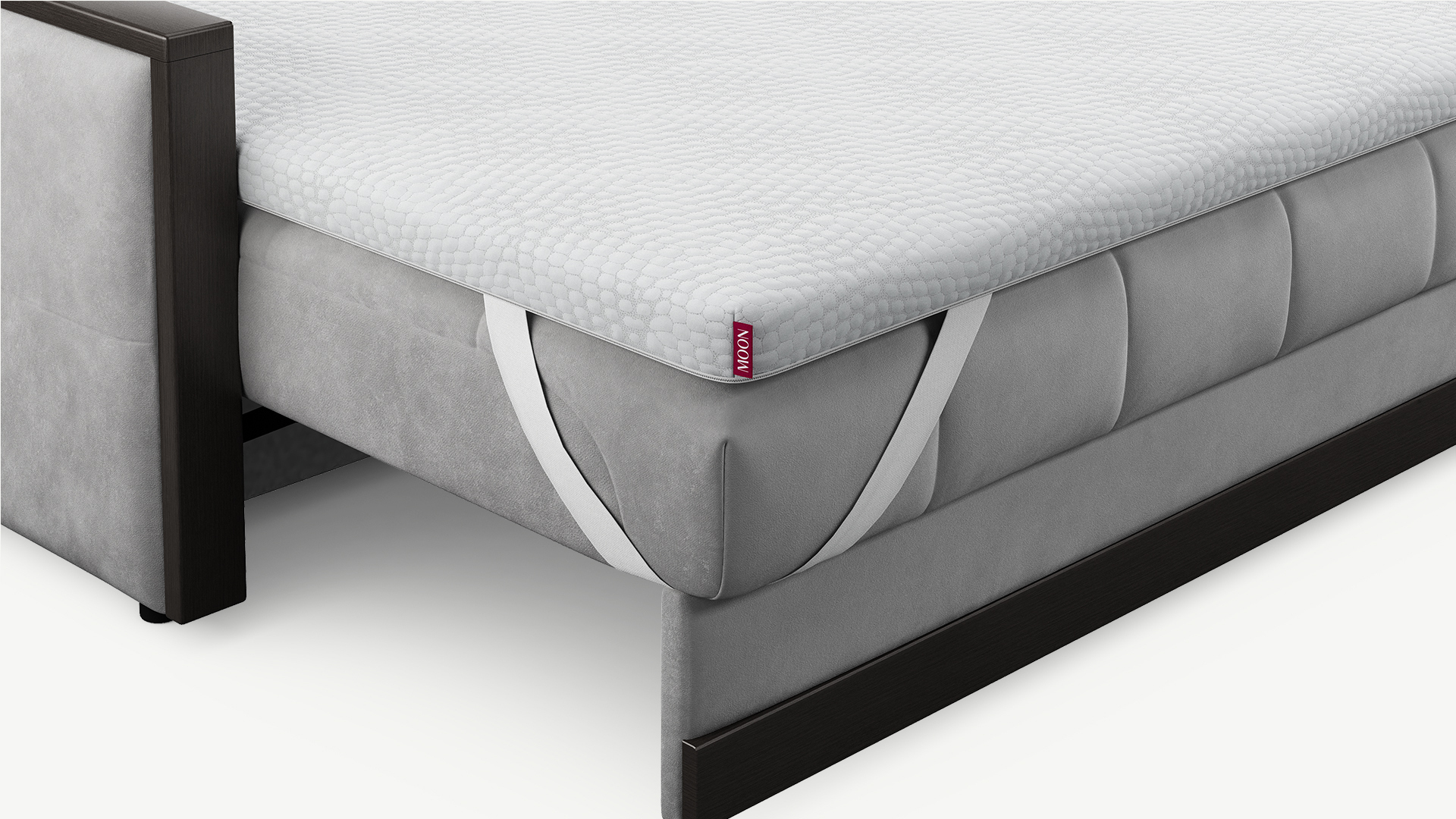 Топпер можно использовать как на диване, так и на матрасе. Фиксация на поверхности спального места осуществляется с помощью широких резинок в четырех угловых точках.