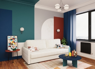 Синка, выполненная в обивочной ткани, позволяет ставить диван в центре комнаты и зонировать пространство.