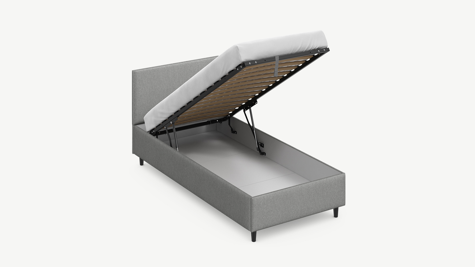 • Скрытая под основанием вместительная емкость без внутренних перегородок позволяет использовать всю площадь подкроватного пространства для хранения вещей.