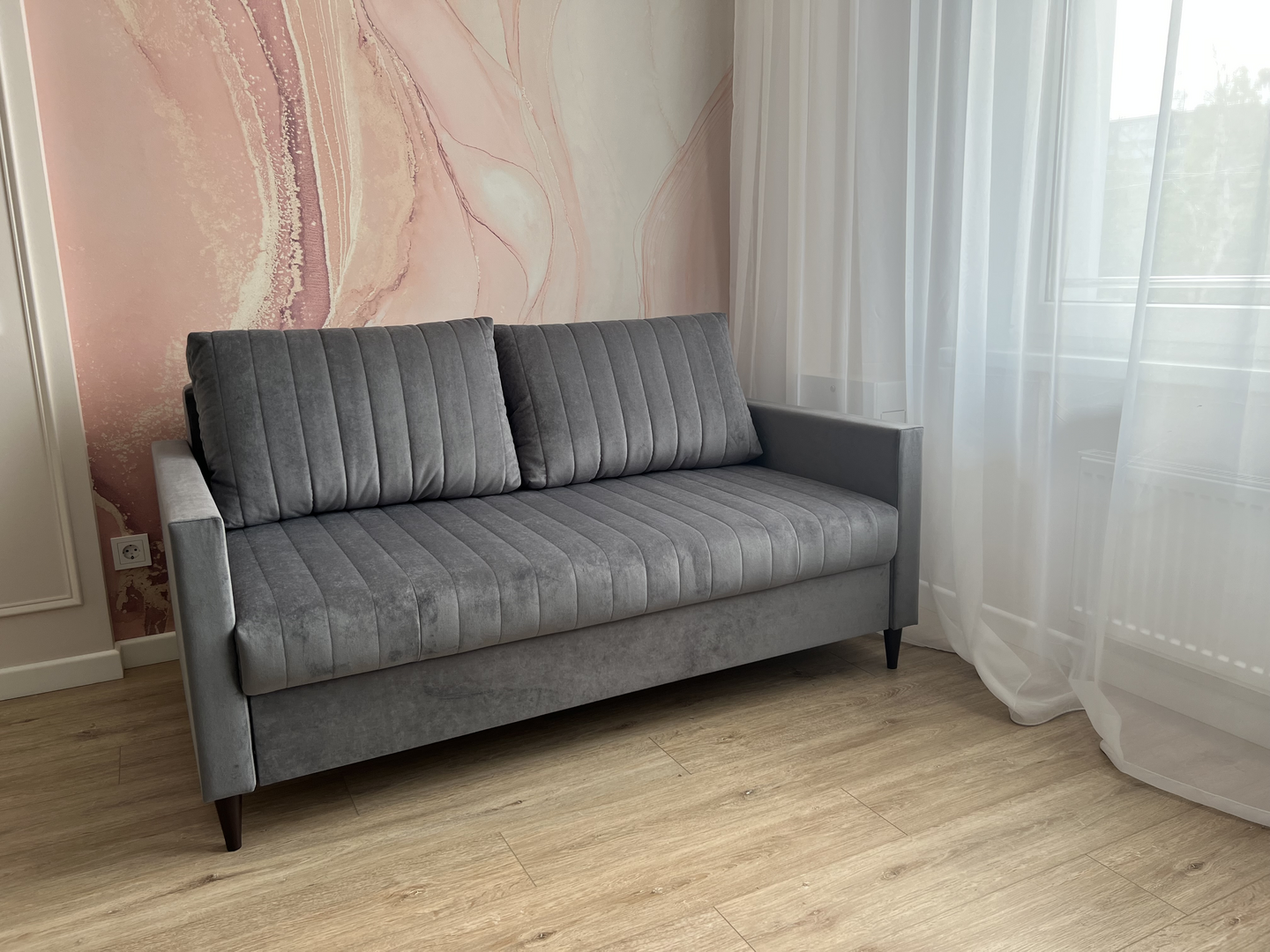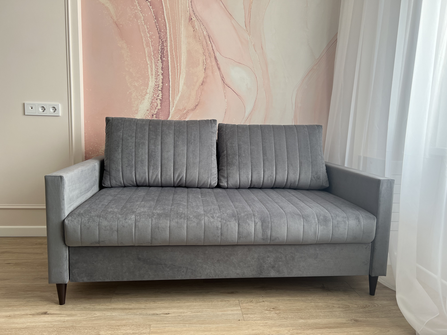 Классный и удобный диван для небольшой квартиры на ножках, трансформирующийся в спальное место на 140! Огонь!