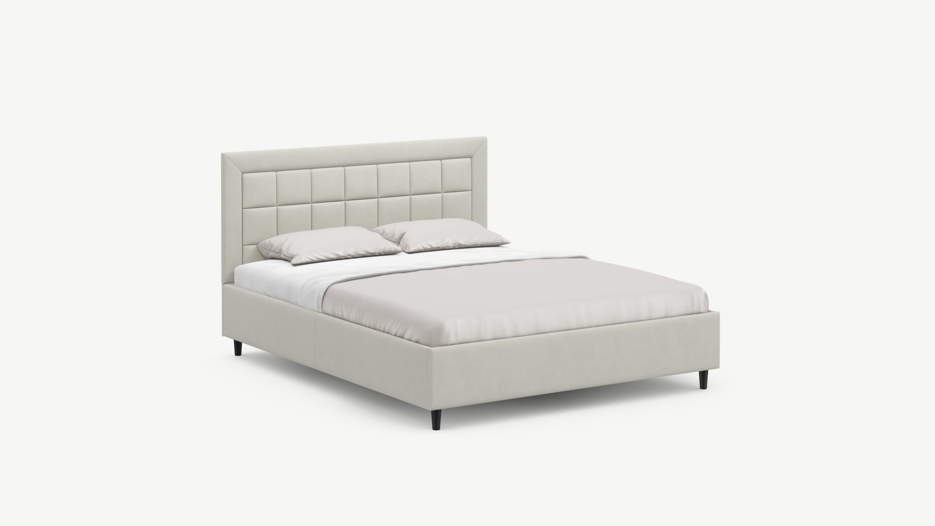 Кровать MOON FAMILY 1251 украшена объемной стежкой-рисунком. Особую выразительность стежка в крупный квадрат получает за счет глубины шва и фактурности проступающего рисунка. Помещенная в центр изголовья, стежка обрамлена тканью, словно картина – рамой. Формы MOON FAMILY 1251 оставлены максимально простыми. Едва заметные вертикальные шовчики на боковых царгах кровати добавляют образу шарма, удачно оттеняя уверенное звучание прямых и искусный декор изголовья.