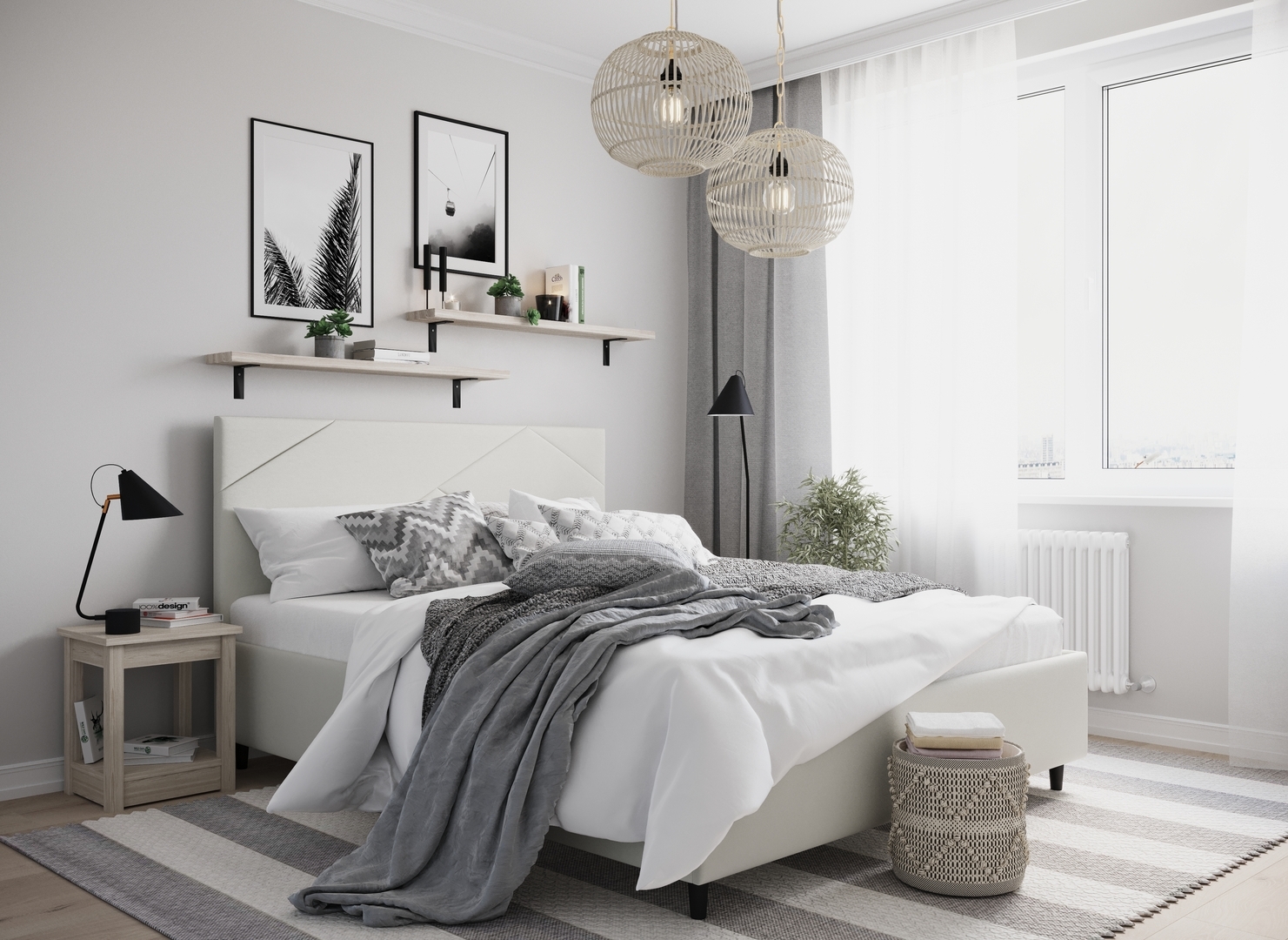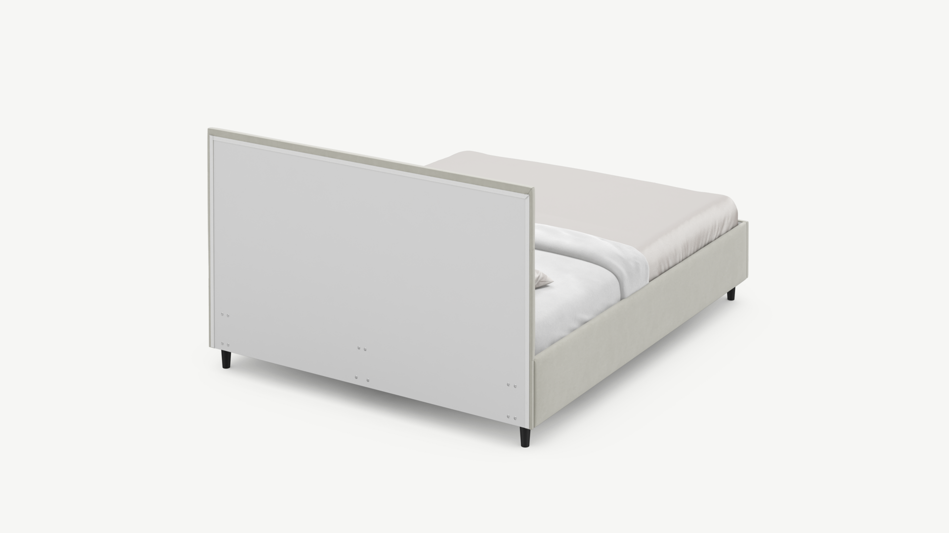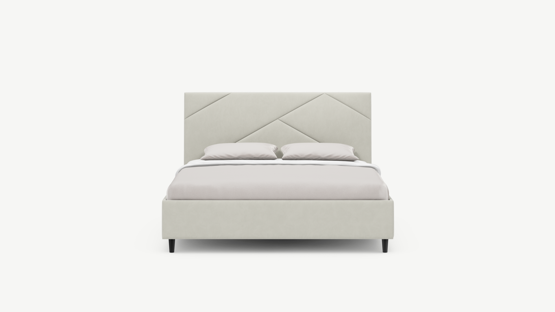 Элегантным и практичным акцентом служат скрытые карманы, расположенные по его углам. Лаконичные формы объемных царг создают единый гармоничный образ и фокусируют внимание на центральном текстурном элементе кровати.
