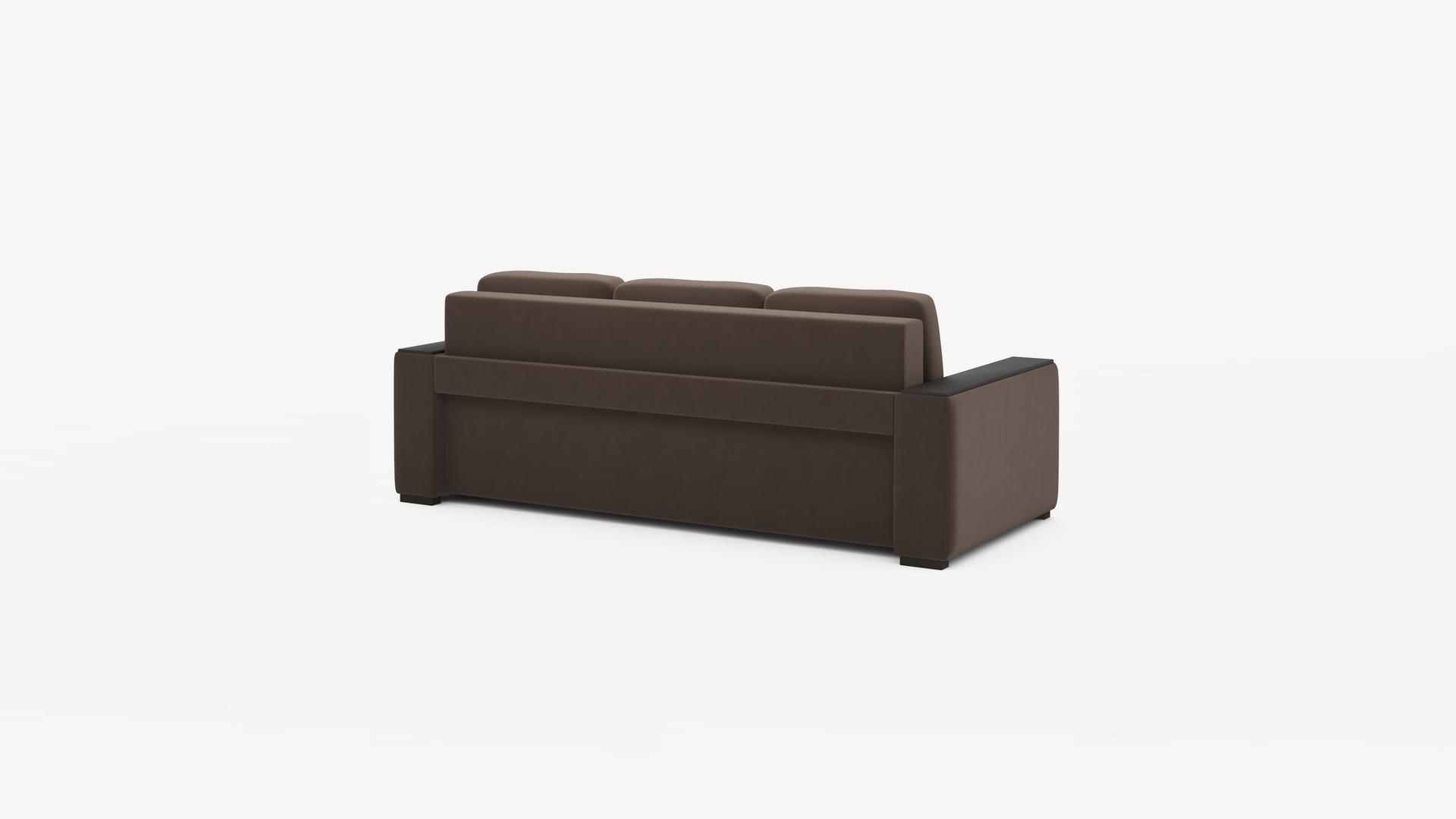 Спинка, выполненная в обивочной ткани, позволяет ставить диван в центре комнаты и зонировать пространство.