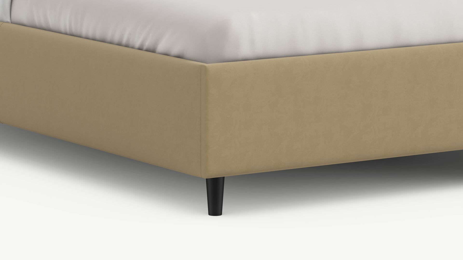 Стежка помещена в центр изголовья и обрамлена, словно картина. Объемные царги завершают цельную фигуру кровати и становятся гармоничным дополнением ее образа.