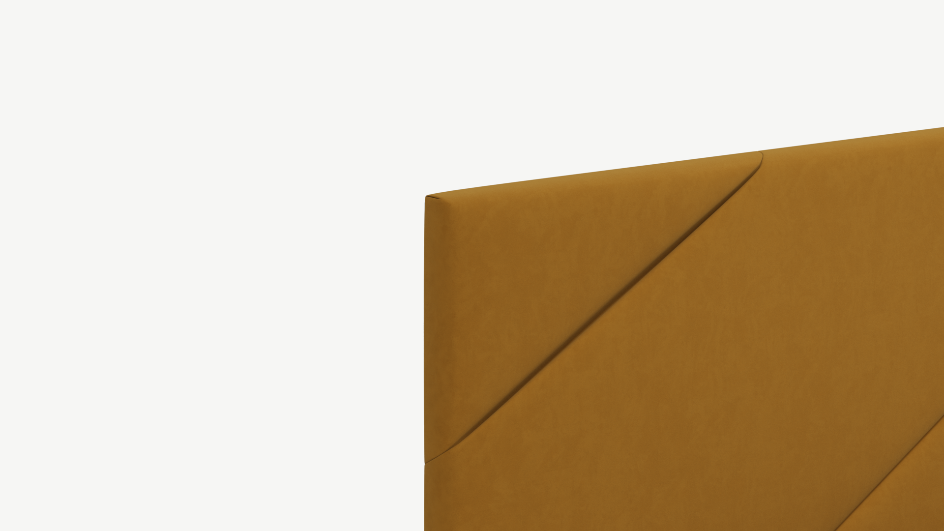 Элегантным и практичным акцентом служат скрытые карманы, расположенные по его углам. Лаконичные формы объемных царг создают единый гармоничный образ и фокусируют внимание на центральном текстурном элементе кровати.
