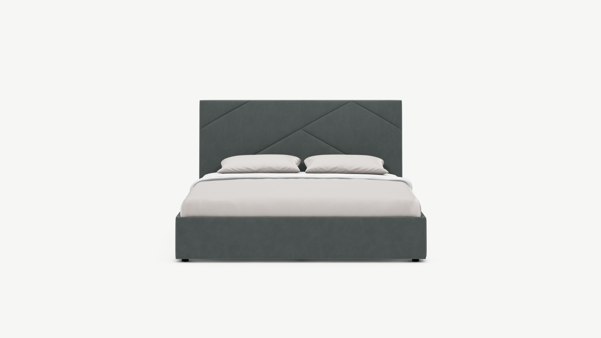 MOON FAMILY 1257 привлекает внимание оригинальным исполнением: широкие полосы ткани эффектно пересекают периметр изголовья, создавая на нем графический орнамент. Элегантным и практичным акцентом служат скрытые карманы, расположенные по его углам. Лаконичные формы объемных царг создают единый гармоничный образ и фокусируют внимание на центральном текстурном элементе кровати.
