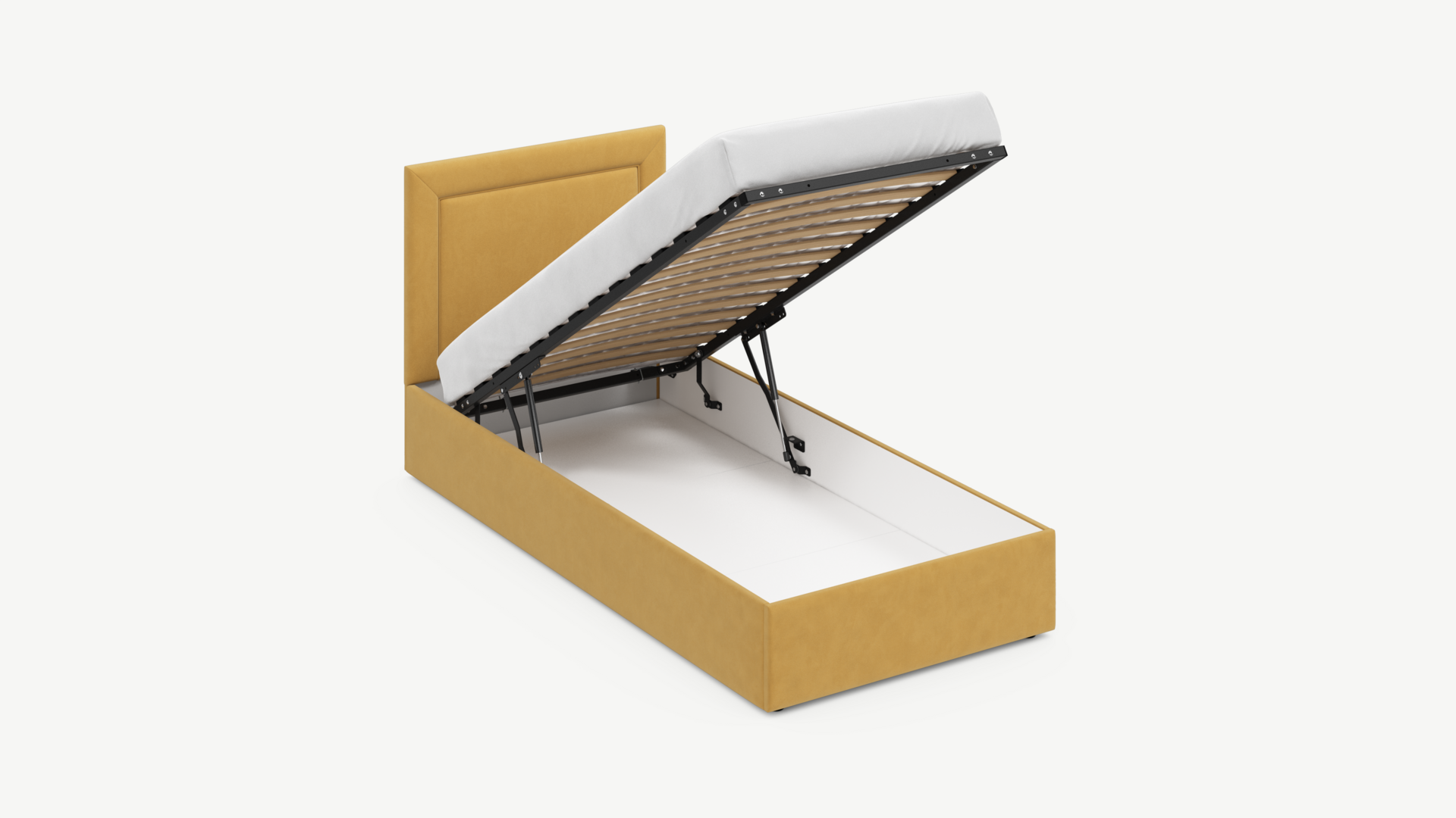 Вместительная емкость под кроватью без внутренних перегородок позволяет использовать для хранения вещей 100% пространства.
