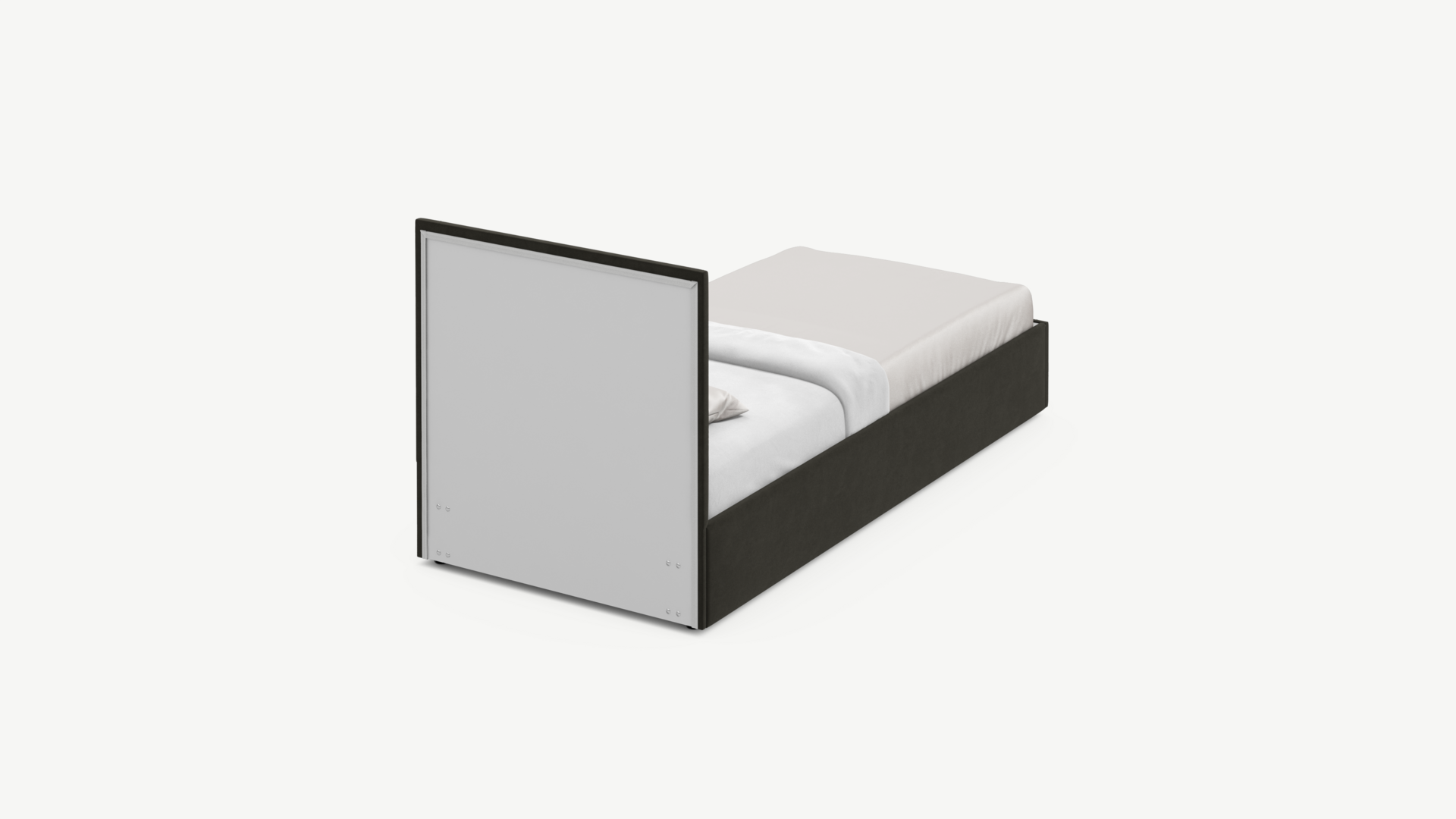 Кровать MOON FAMILY 1258 производит впечатление прежде всего искусно решенным изголовьем: творческий подход к обивочному материалу гарантирует притягательность образа, а намеренно простые формы дизайна становятся идеальной подсветкой «спецэффектов».