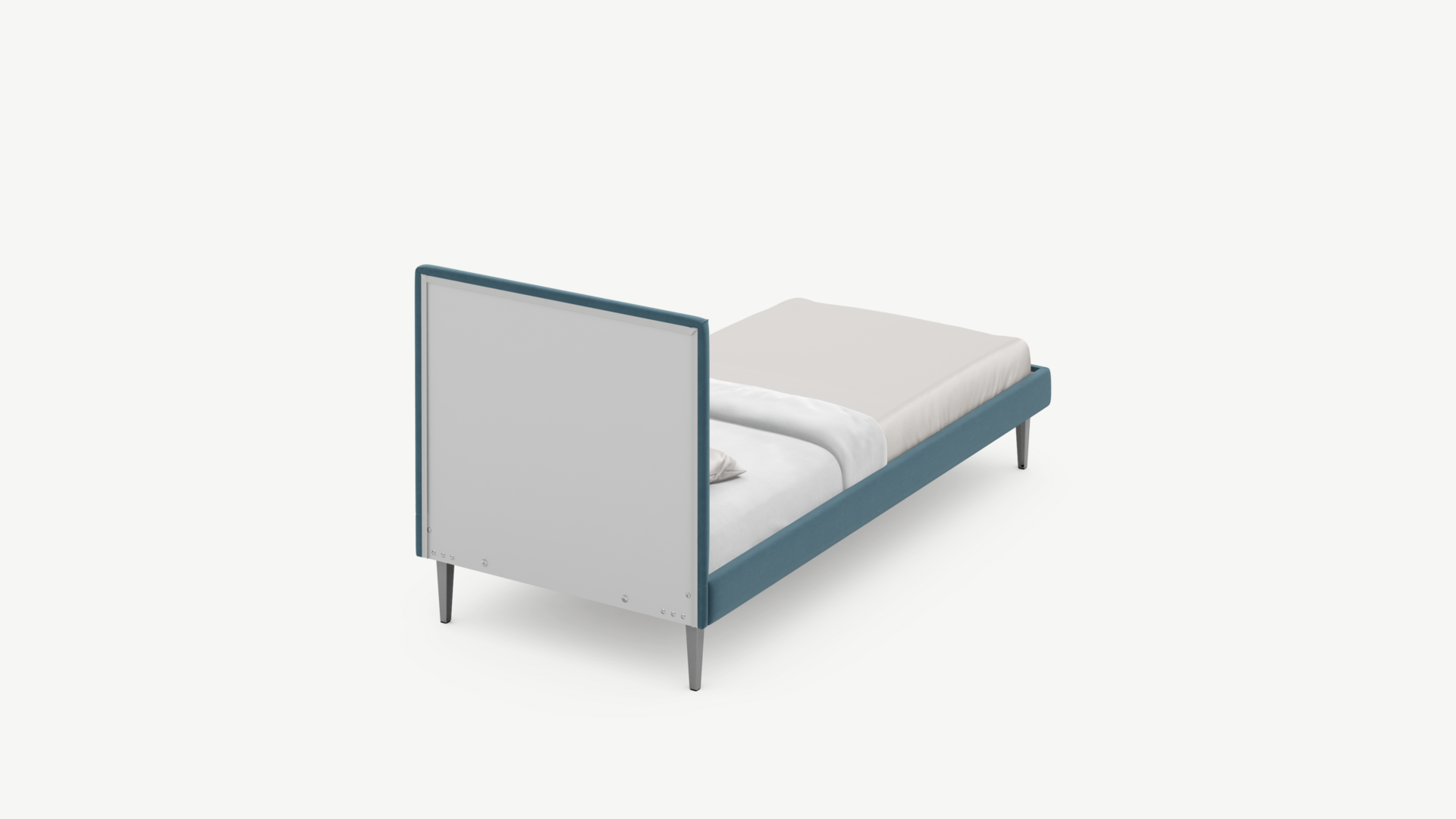 Кровать MOON FAMILY 1256 демонстрирует безупречный баланс изящных пропорций. Лаконичное изголовье, узкие царги и высокие опоры создают эффектный образ, привносящий в пространство спальни стильный и яркий акцент.