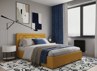 Фактура обивочного материала подбирается дизайнерами с учетом технологических и стилевых особенностей кровати.