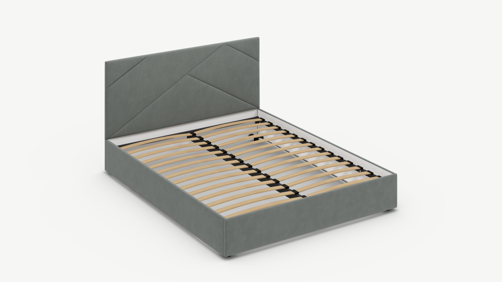 MOON FAMILY 1257 привлекает внимание оригинальным исполнением: широкие полосы ткани эффектно пересекают периметр изголовья, создавая на нем графический орнамент. Элегантным и практичным акцентом служат скрытые карманы, расположенные по его углам. Лаконичные формы объемных царг создают единый гармоничный образ и фокусируют внимание на центральном текстурном элементе кровати.