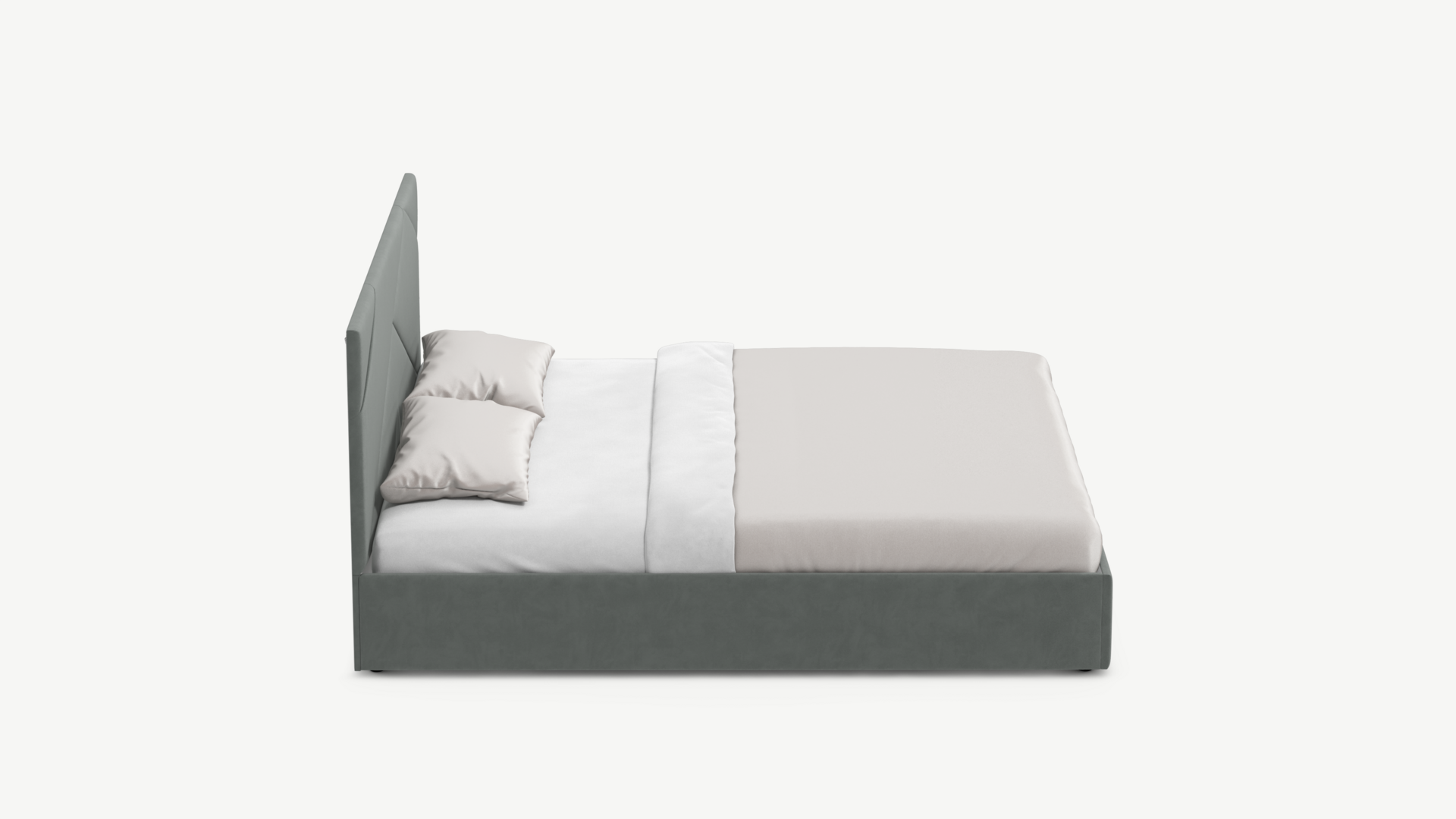 MOON FAMILY 1257 привлекает внимание оригинальным исполнением: широкие полосы ткани эффектно пересекают периметр изголовья, создавая на нем графический орнамент. Элегантным и практичным акцентом служат скрытые карманы, расположенные по его углам. Лаконичные формы объемных царг создают единый гармоничный образ и фокусируют внимание на центральном текстурном элементе кровати.