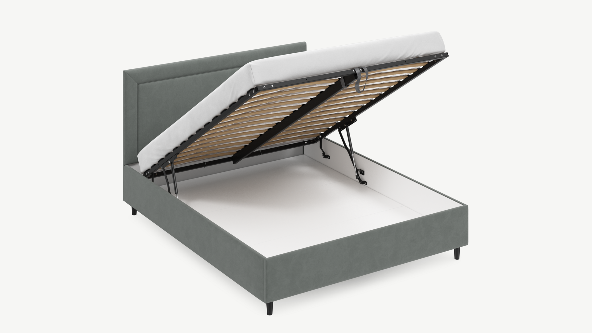Вместительная емкость под кроватью без внутренних перегородок позволяет использовать для хранения вещей 100% пространства.