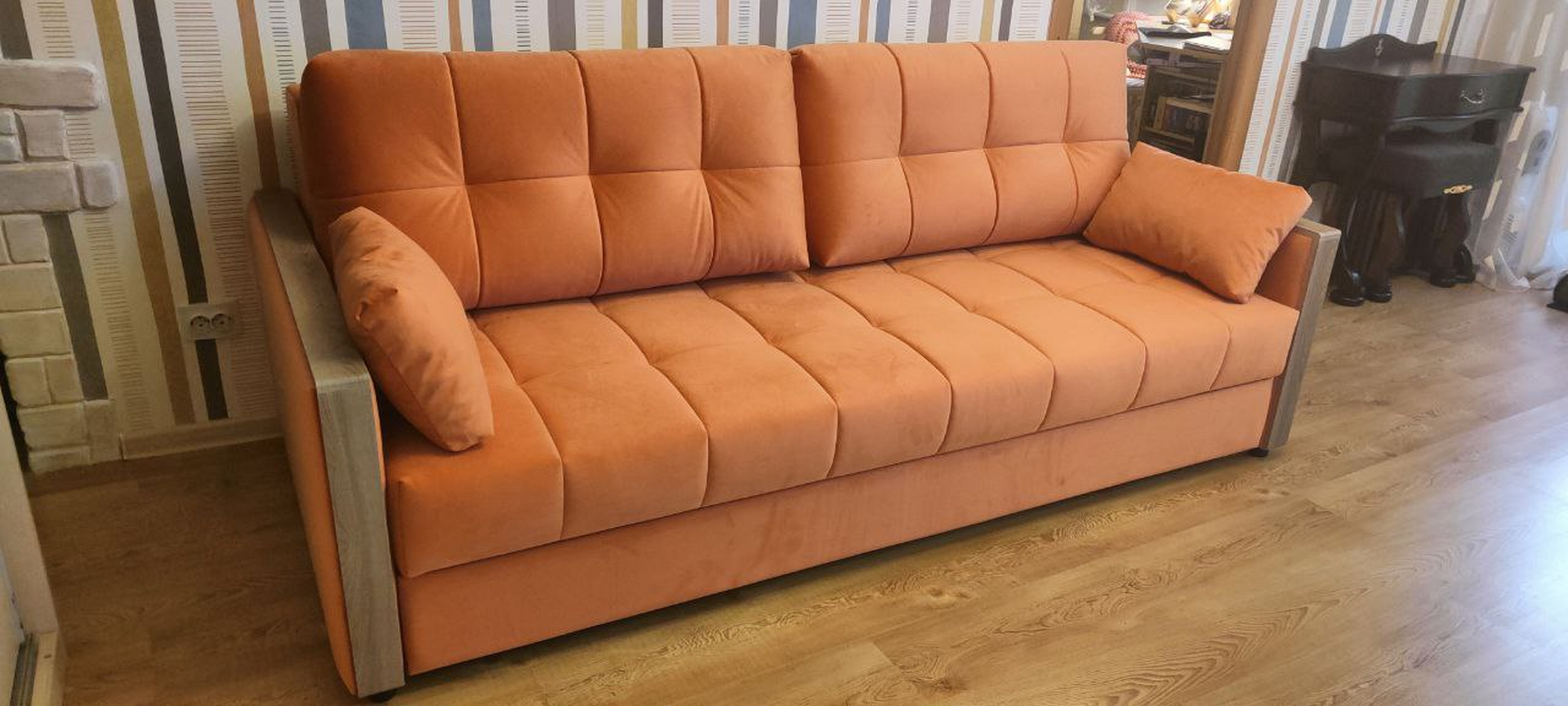 Достоинства: Качественный и исключительно надежный, классический диван на металлокаркасе. Приемлемая цена. Качественные материалы изготовления.