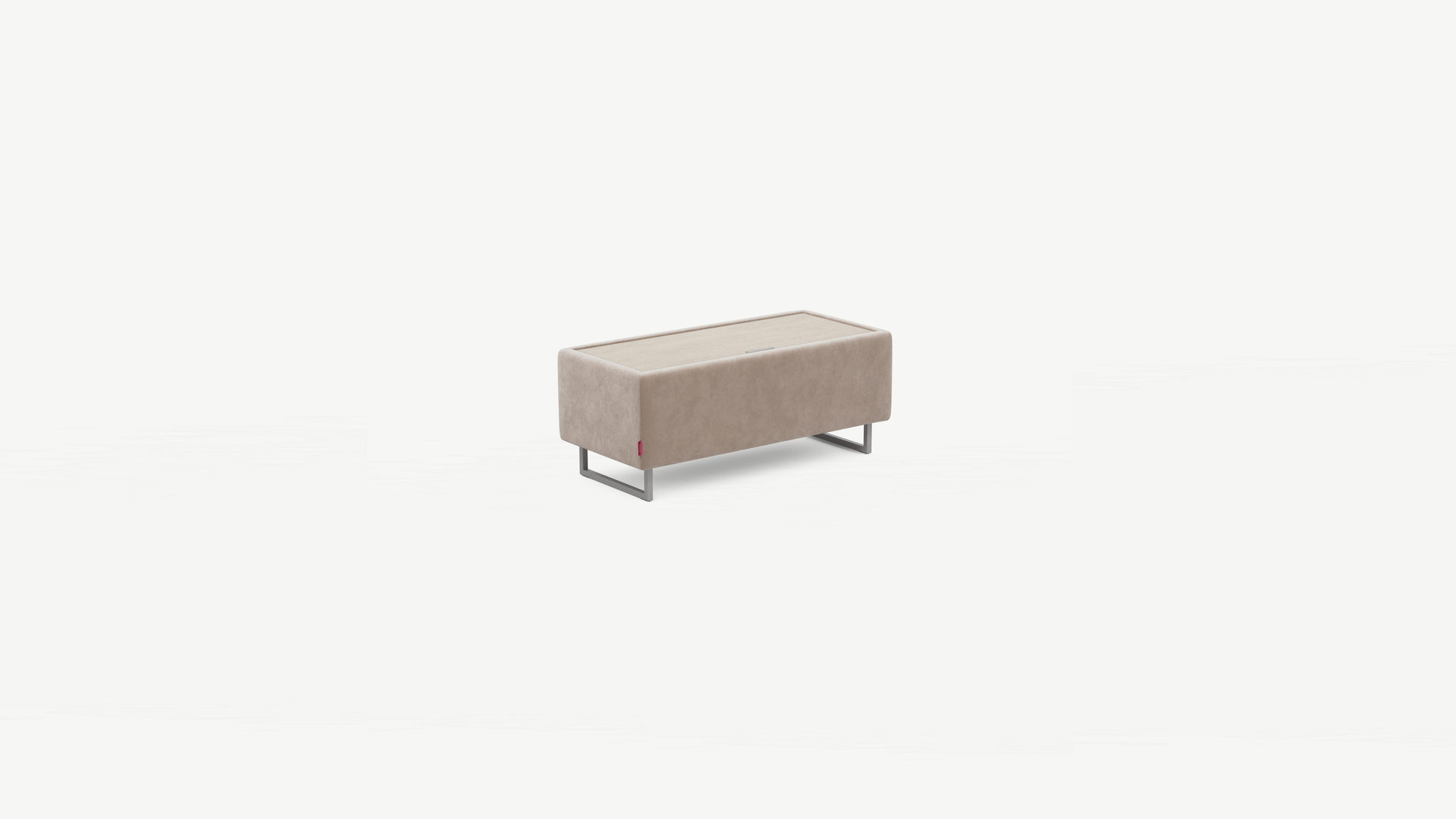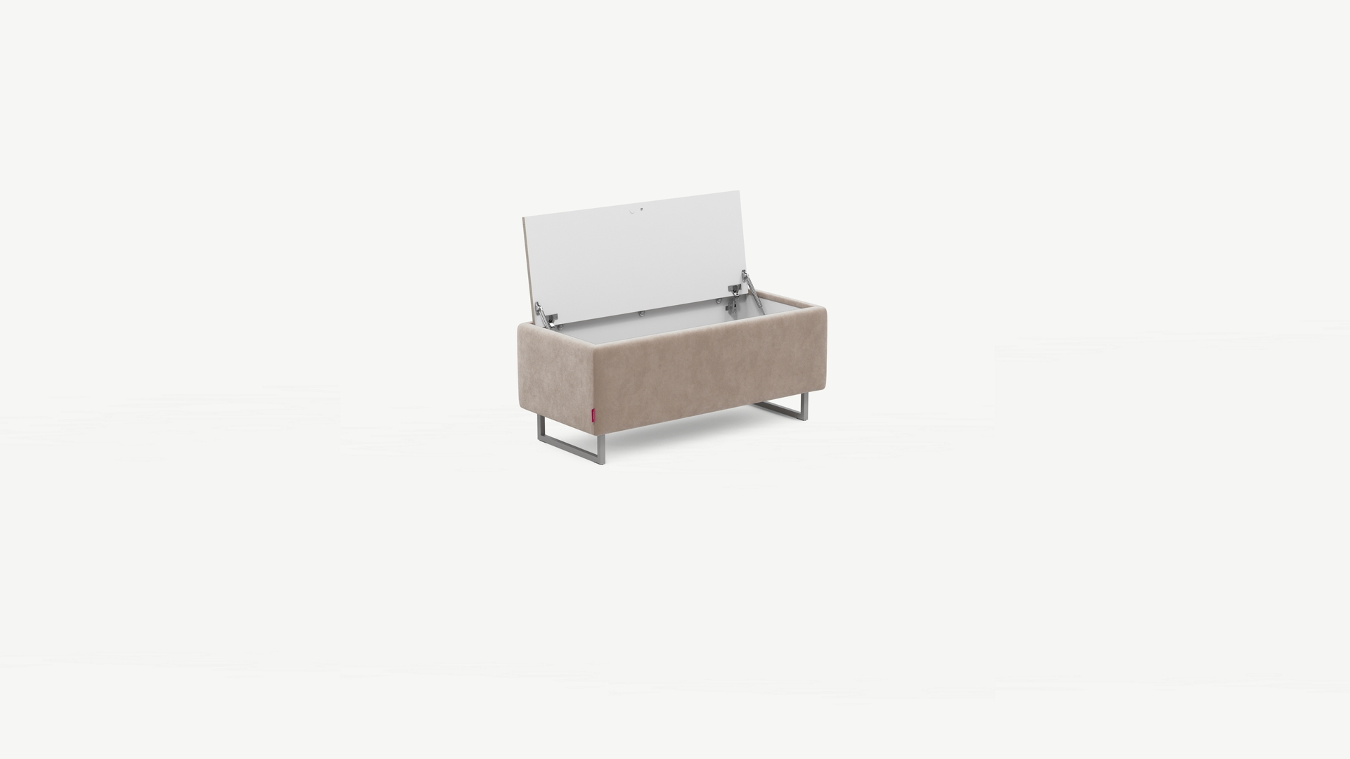 MOON 117 снабжена встроенной столешницей, а также вместительной емкостью для хранения. Легкий доступ к внутренней части банкетки обеспечивает скрытая в столешнице ультратонкая ручка. Оснащенная газовыми амортизаторами, крышка-столешница функционирует плавно и бесшумно. Надежно фиксируясь в открытом положении, она обеспечивает комфортный доступ к содержимому.