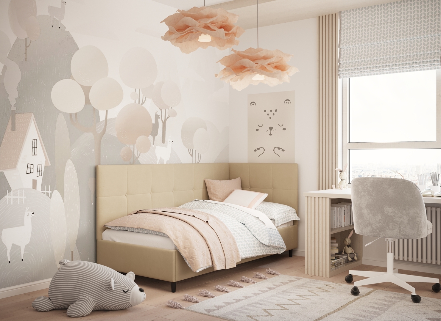 В подростковой комнате эта кровать станет стильным акцентом окружающего интерьера и возьмет на себя роль удобной кушетки для друзей, зашедших в гости.
