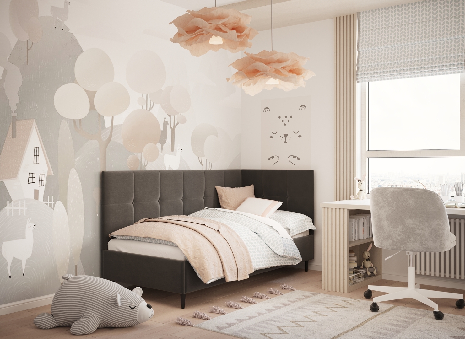 В подростковой комнате эта кровать станет стильным акцентом окружающего интерьера и возьмет на себя роль удобной кушетки для друзей, зашедших в гости.