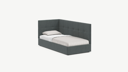 Угловая односпальная кровать MOON FAMILY 1261 с мягкой спинкой и изголовьем создаст в Вашей спальне ощущение уюта. Крупная квадратная стежка привносит в интерьер графических акцентов, а вставка из пуговиц наполняет пространство ощущением домашнего тепла.