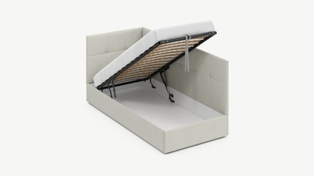 • Скрытая под основанием вместительная емкость без внутренних перегородок позволяет использовать всю площадь подкроватного пространства для хранения вещей.