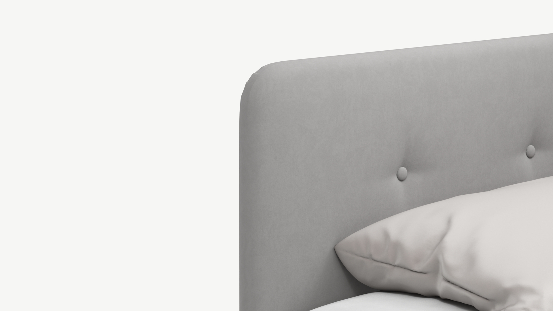 Угловая односпальная кровать MOON FAMILY 1253 с мягкой спинкой и изголовьем обладает округлыми формами, привносящими в интерьер нотки нежности. Изголовье, украшенное пуговицами, добавляет окружающему пространству шарм и уют. Высокие опоры придают кровати визуальной легкости, а также обеспечивают удобство во время уборки.