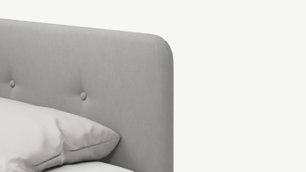Угловая односпальная кровать MOON FAMILY 1253 с мягкой спинкой и изголовьем обладает округлыми формами, привносящими в интерьер нотки нежности. Изголовье, украшенное пуговицами, добавляет окружающему пространству шарм и уют. Высокие опоры придают кровати визуальной легкости, а также обеспечивают удобство во время уборки.