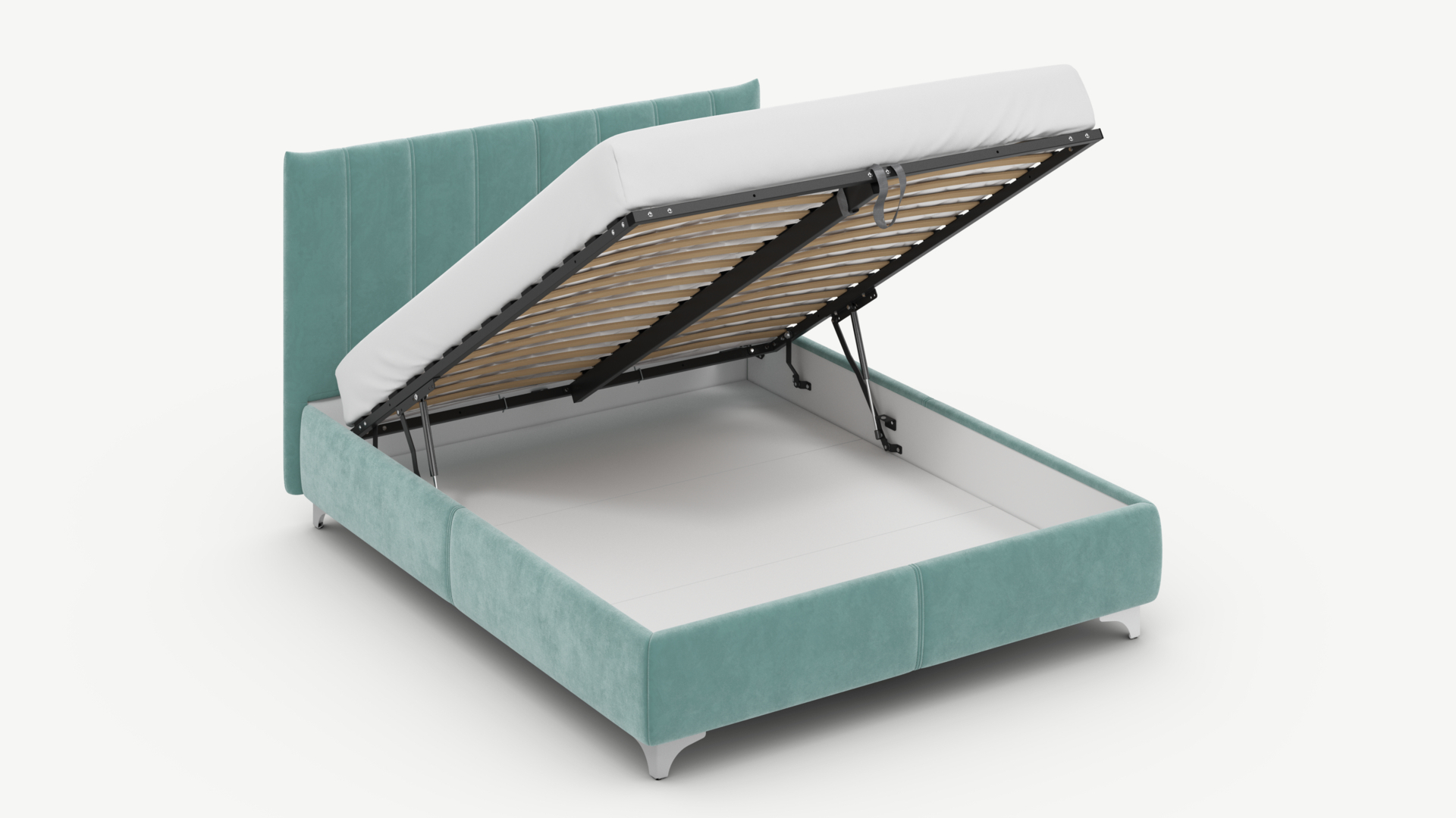 - Скрытая под основанием вместительная емкость без внутренних перегородок позволяет использовать всю площадь подкроватного пространства для хранения вещей.