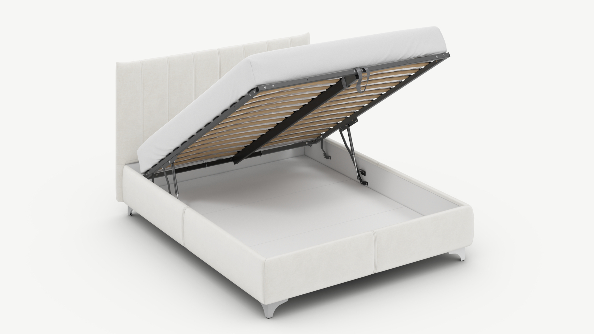 • Скрытая под основанием вместительная емкость без внутренних перегородок позволяет использовать всю площадь подкроватного пространства для хранения вещей.