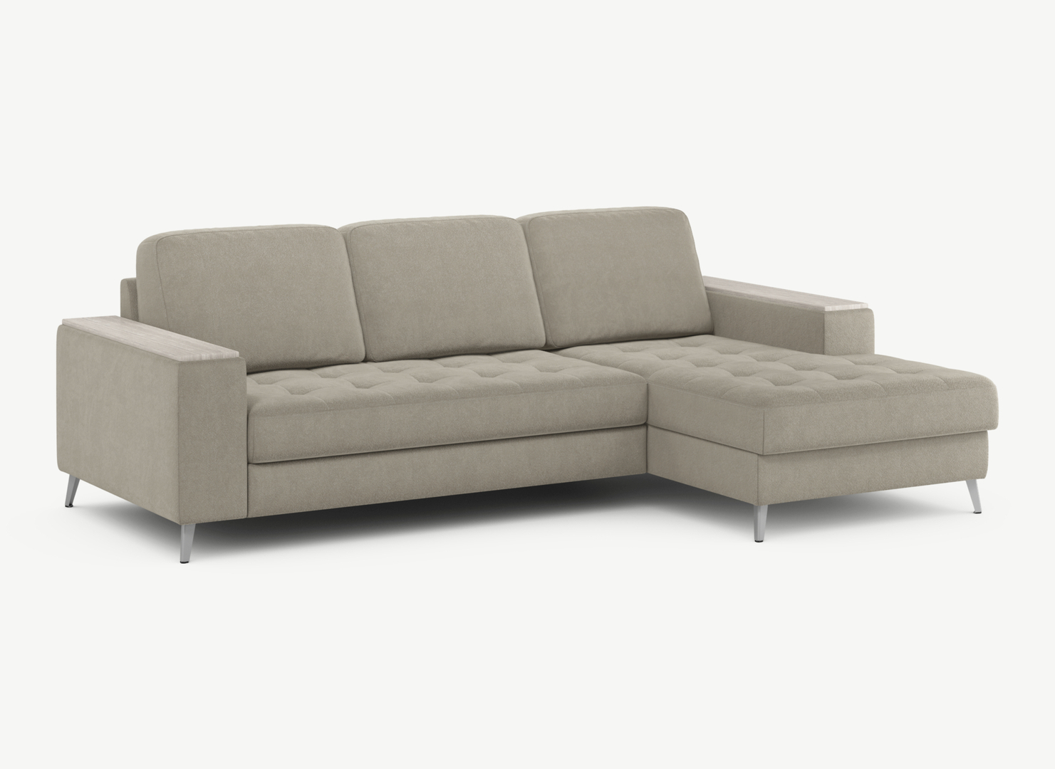 Секция «канапе» обеспечивает дополнительное пространство для отдыха, благодаря которому Вы можете располагаться с максимальным комфортом, удобно вытянув ноги. Под данной секцией расположен вместительный бельевой короб.