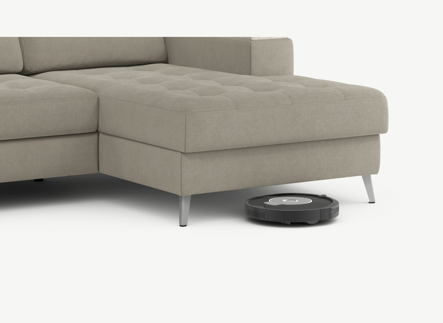 Благодаря высоким наклонным опорам под диваном проходит робот-пылесос и легко проводится влажная уборка, что обеспечивает чистоту и порядок в доме.