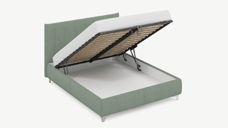- Скрытая под основанием вместительная емкость без внутренних перегородок позволяет использовать всю площадь подкроватного пространства для хранения вещей.