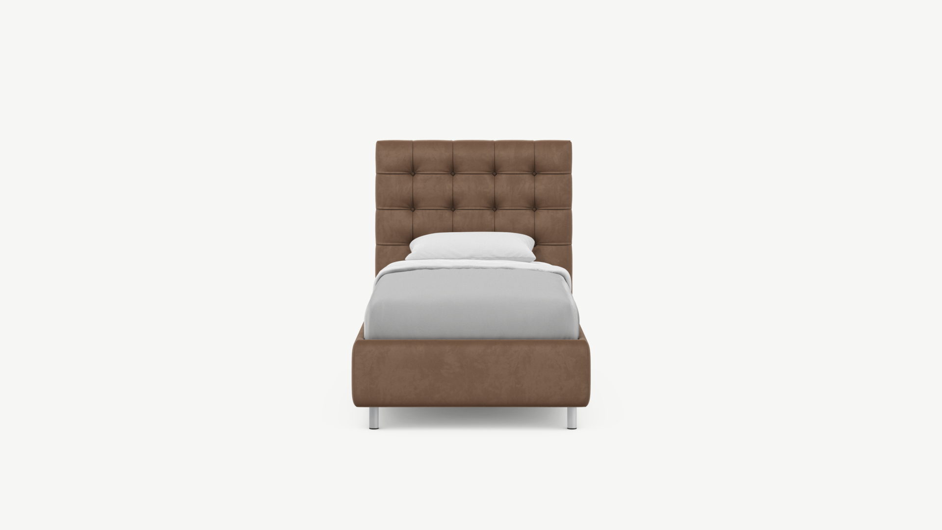 Творческий подход к выбору обивочного материала меняет образ дизайна. Например, однотонный гладкий велюр придает кровати эстетическую утонченность, в то время как фактурное тиснение на ткани усиливает игру перехода оттенков и выглядит особенно оригинально. Оформите образ кровати, выбирая обивку, которая подчеркнет звучание Вашей спальни и отразит Ваш вкус.