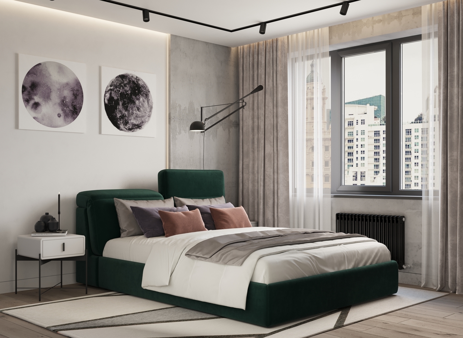 Изголовье подчеркивает эстетику MOON 1107, а также дарит дополнительный комфорт и уют спальному месту. Обратная сторона изголовья выполнена в мебельной ткани и позволяет ставить кровать в центре комнаты для зонирования пространства.