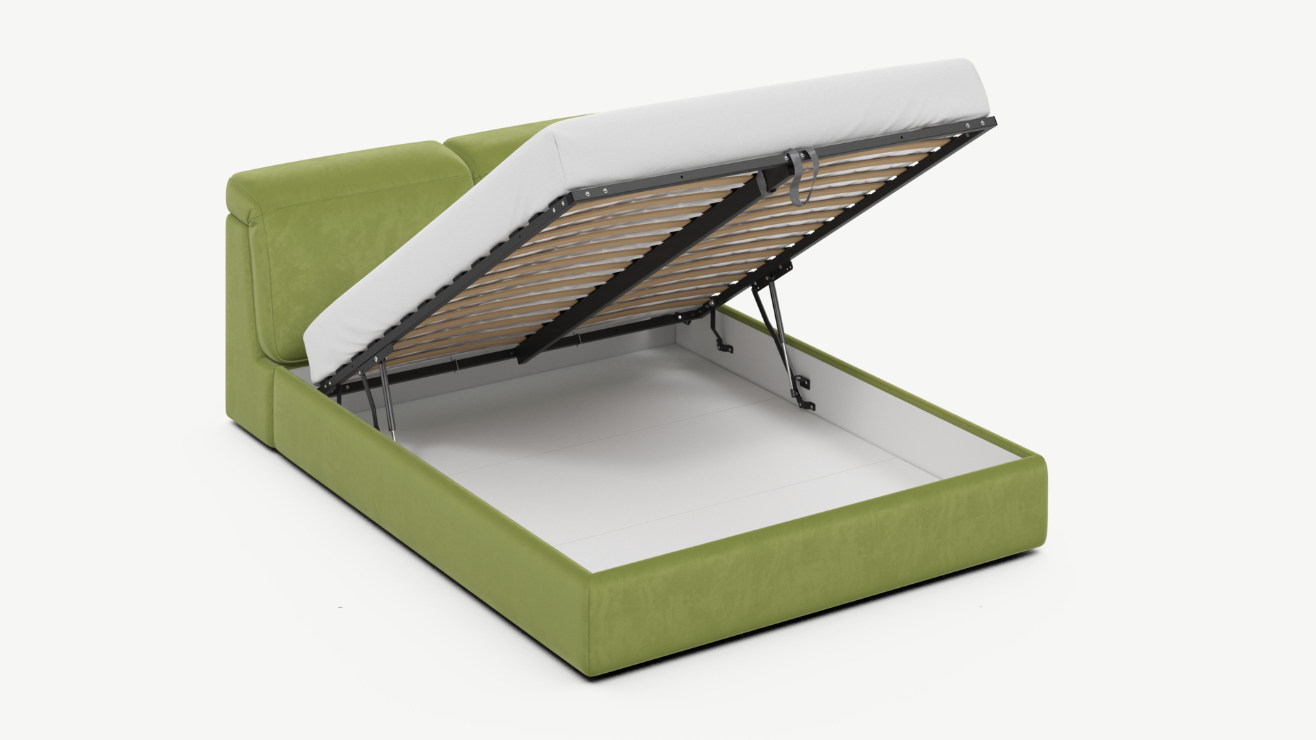• Скрытая под основанием вместительная емкость без внутренних перегородок позволяет использовать всю площадь подкроватного пространства для хранения вещей.