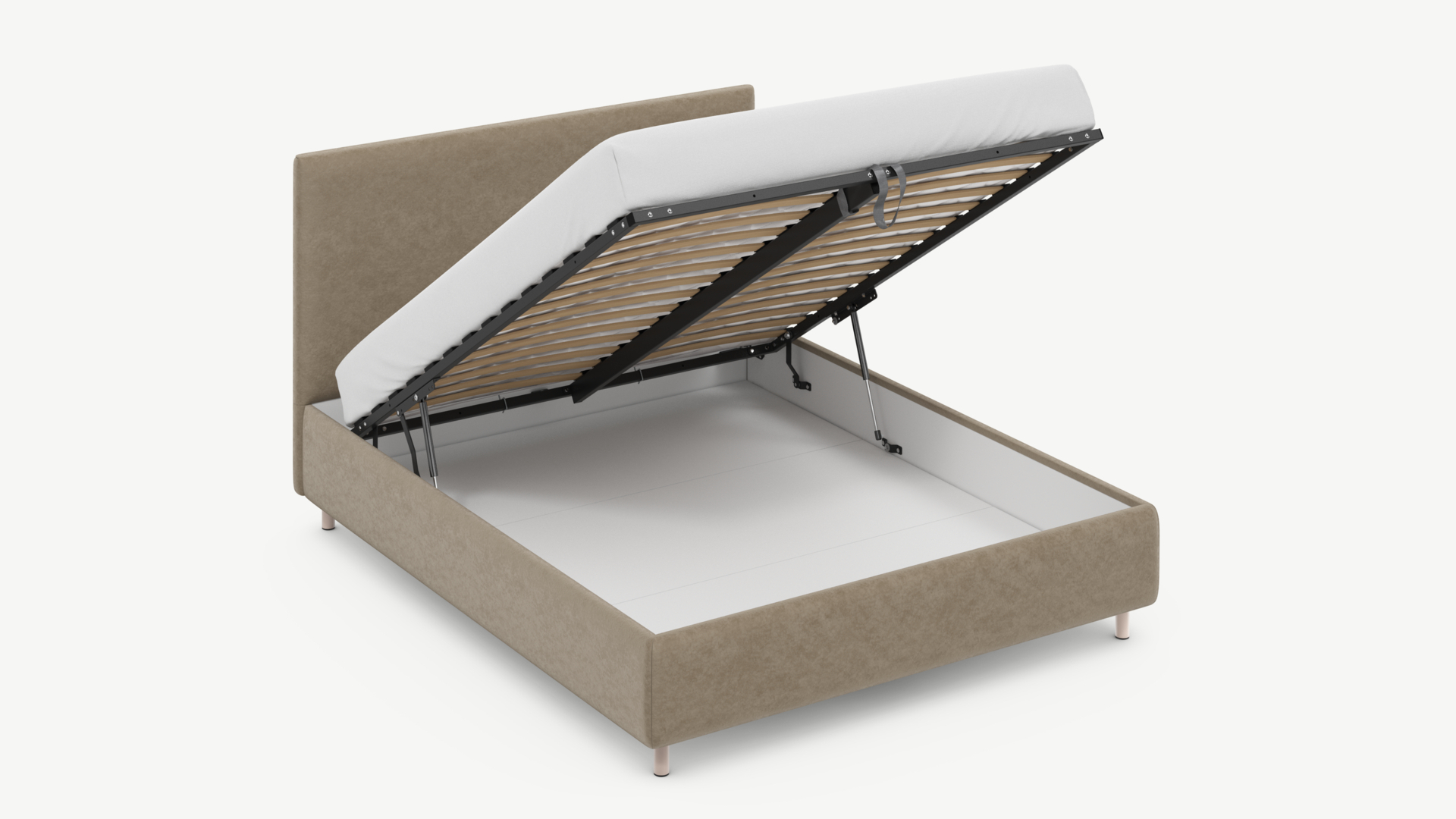 • Скрытая под основанием вместительная емкость без внутренних перегородок позволяет использовать всю площадь подкроватного пространства для хранения вещей.