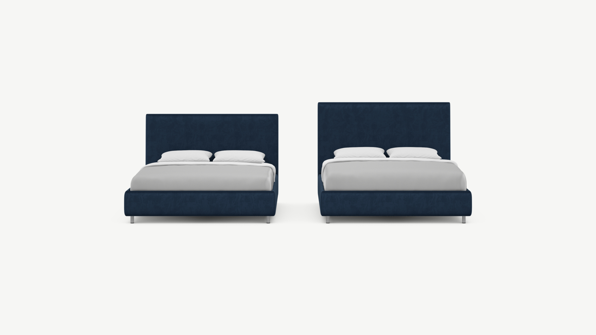 Творческий подход к выбору обивочного материала меняет образ дизайна MOON 1156. Например, однотонный гладкий велюр придает кровати эстетическую утонченность, в то время как фактурное тиснение на ткани усиливает игру перехода оттенков и выглядит особенно оригинально. Оформите образ кровати, выбирая обивку, которая подчеркнет звучание Вашей спальни и отразит Ваш вкус.
