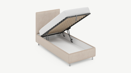 • Скрытая под основанием вместительная емкость без внутренних перегородок позволяет использовать всю площадь подкроватного пространства для хранения вещей.